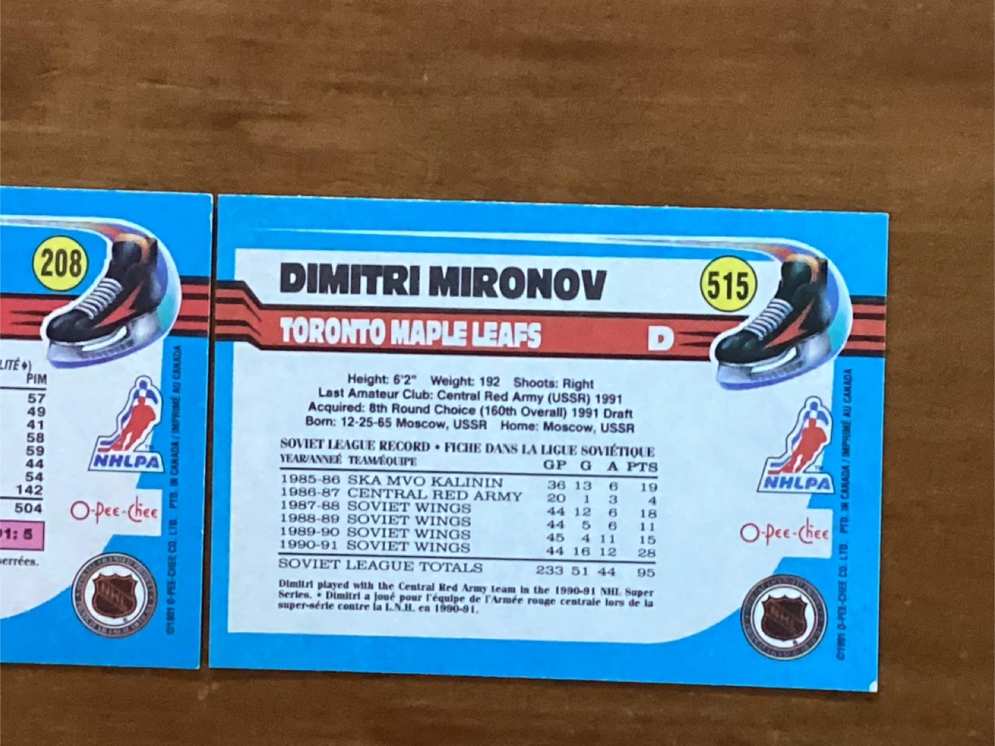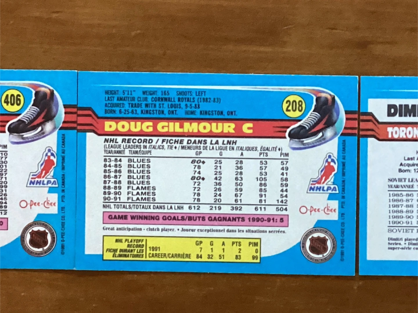 3. 1991-92 O-PEE-CHEE NHL Cards #’s 208, 406 & 515