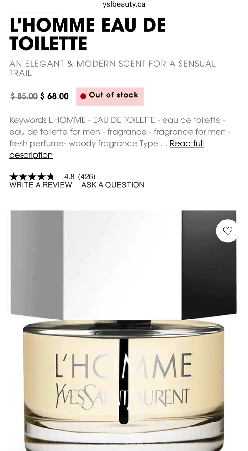 Selling a bottle of brand new Yves Saint Laurent L'Homme Eau de Toilette! Never sprayed. Currently sold out online for this size.