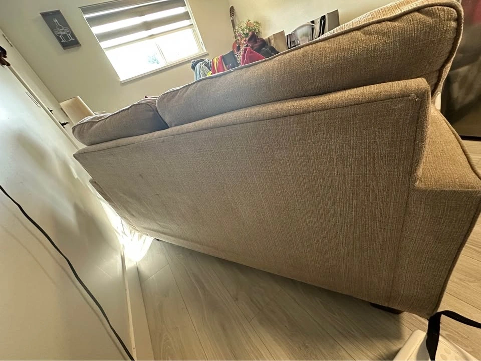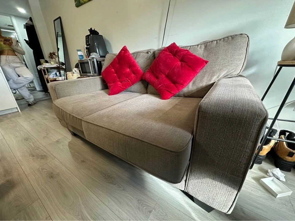 Selling our well-maintained modern beige sofa as we are moving. It’s in great condition and still very comfortable with firm, supportive cushions.
