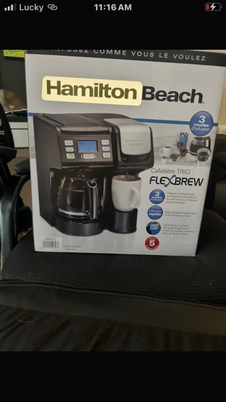 We have 1 more BRAND NEW Hamilton Beach Flex Brew Trio for sale.