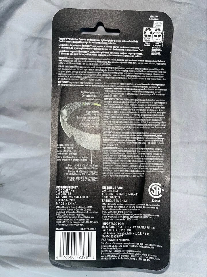 Selling brand new 3M™ SecureFit™ 400 Series Safety Eyewear (SF400G-WV-6-PS). Perfect for construction, industrial, or lab use. Features include: Black frame with green accents, grey anti-fog lens for clear vision. Pack of 6. Condition: Brand new, never used. Price: $10. Pickup in Brampton, ON.