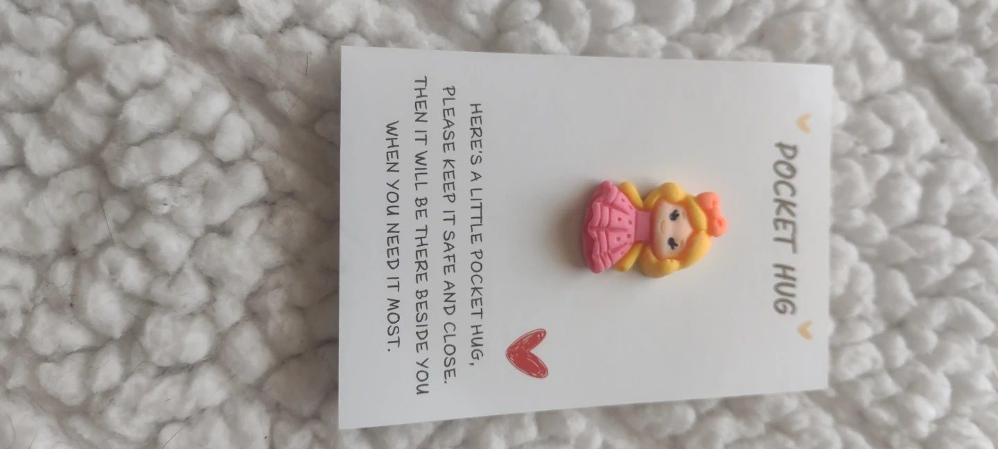 . If you were to bulk in bulk l.wluld give you a Great Deal. This set includes.Oclet hugs designed to bring a smile! There's a Worry Worm, a little yellow bear hug, a positive dinosaur, and a pocket hug ballerina. Each pin comes with a card featuring an uplifting message. They're great for clipping onto purses, keys, or bags to offer a little boost.Asming $2 Each.