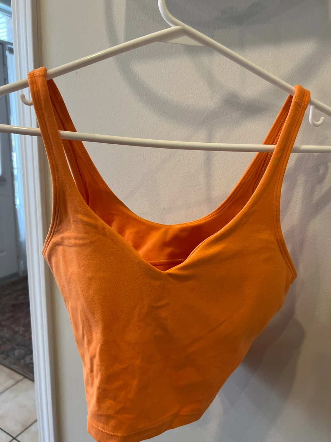 Orange Lululemon Align tank top. It's designed for comfort and movement. It's made from soft, breathable fabric.