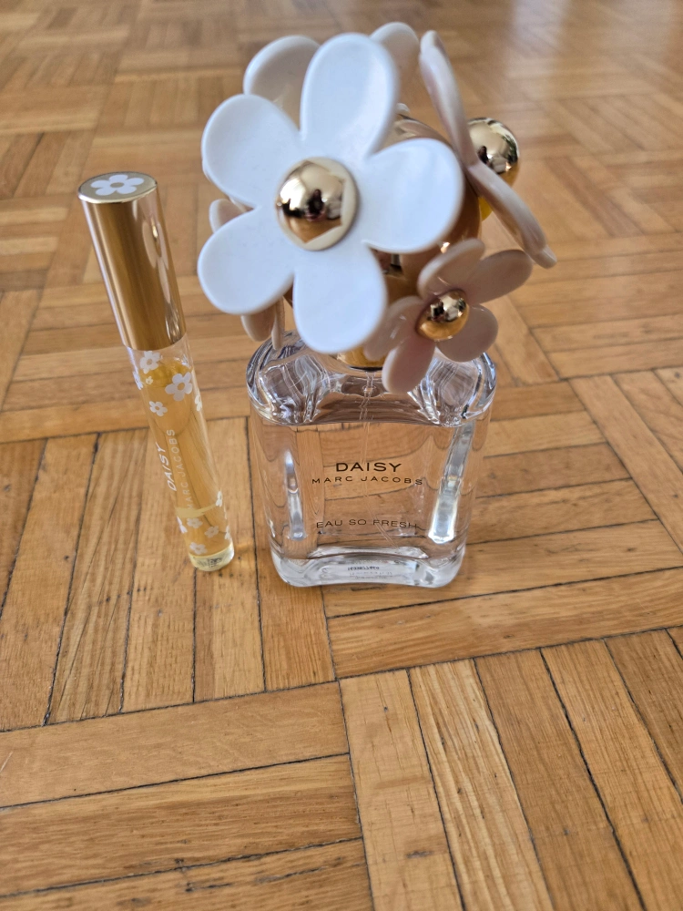 75ml Marc Jacobs Daisy Eau So Fresh perfume plus a small travel size as well. There's still lots left in it, was stored in a cool dark closet out of the sun.