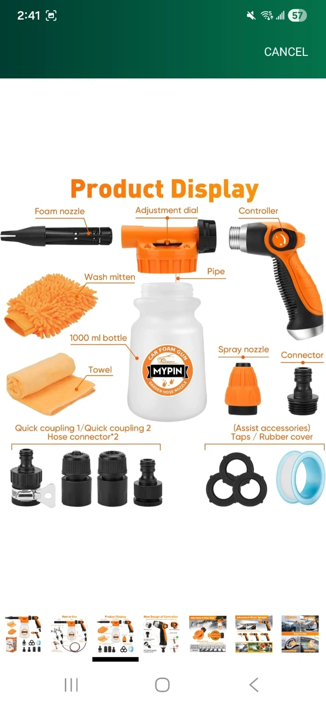 Get your car sparkling clean with this MYPIN car foam gun! It easily connects to your garden hose for convenient use.
