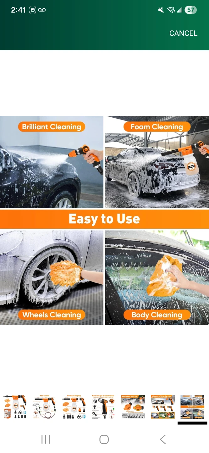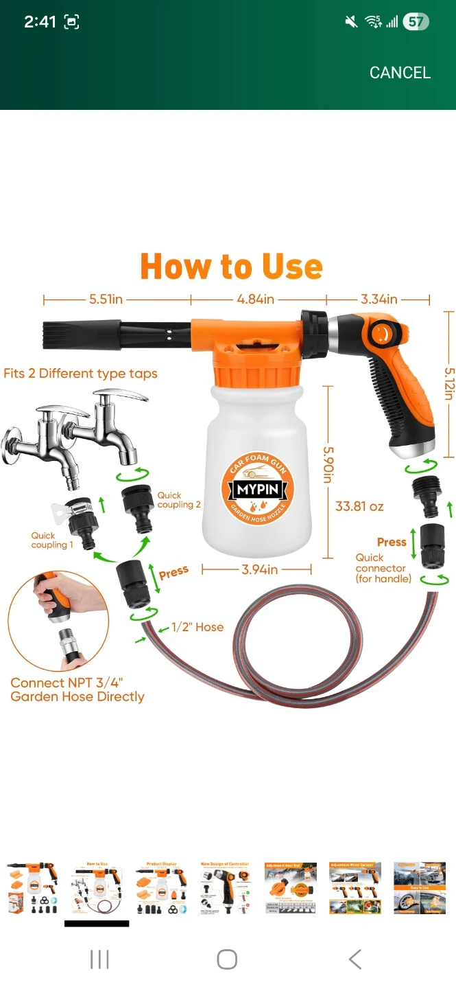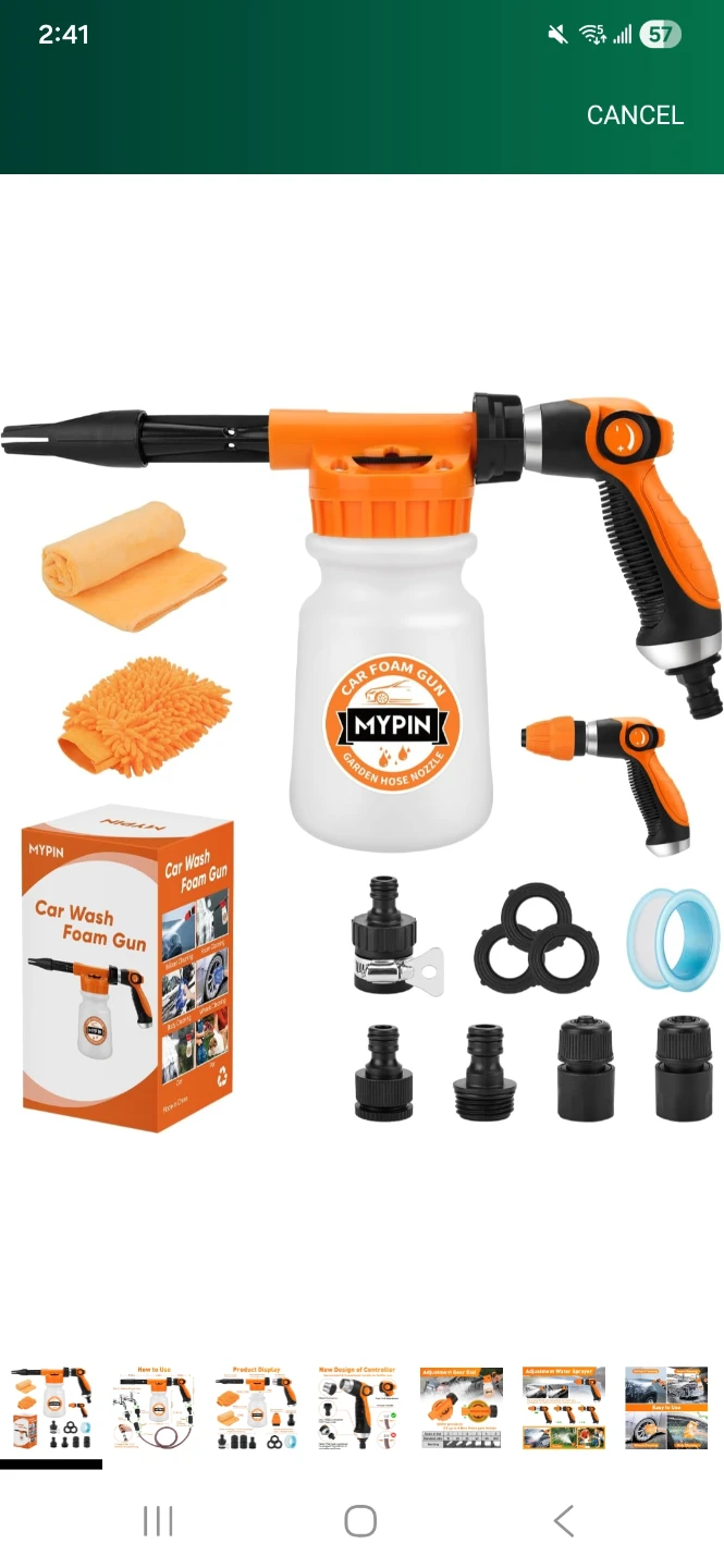 Get your car sparkling clean with this MYPIN car foam gun! It easily connects to your garden hose for convenient use.