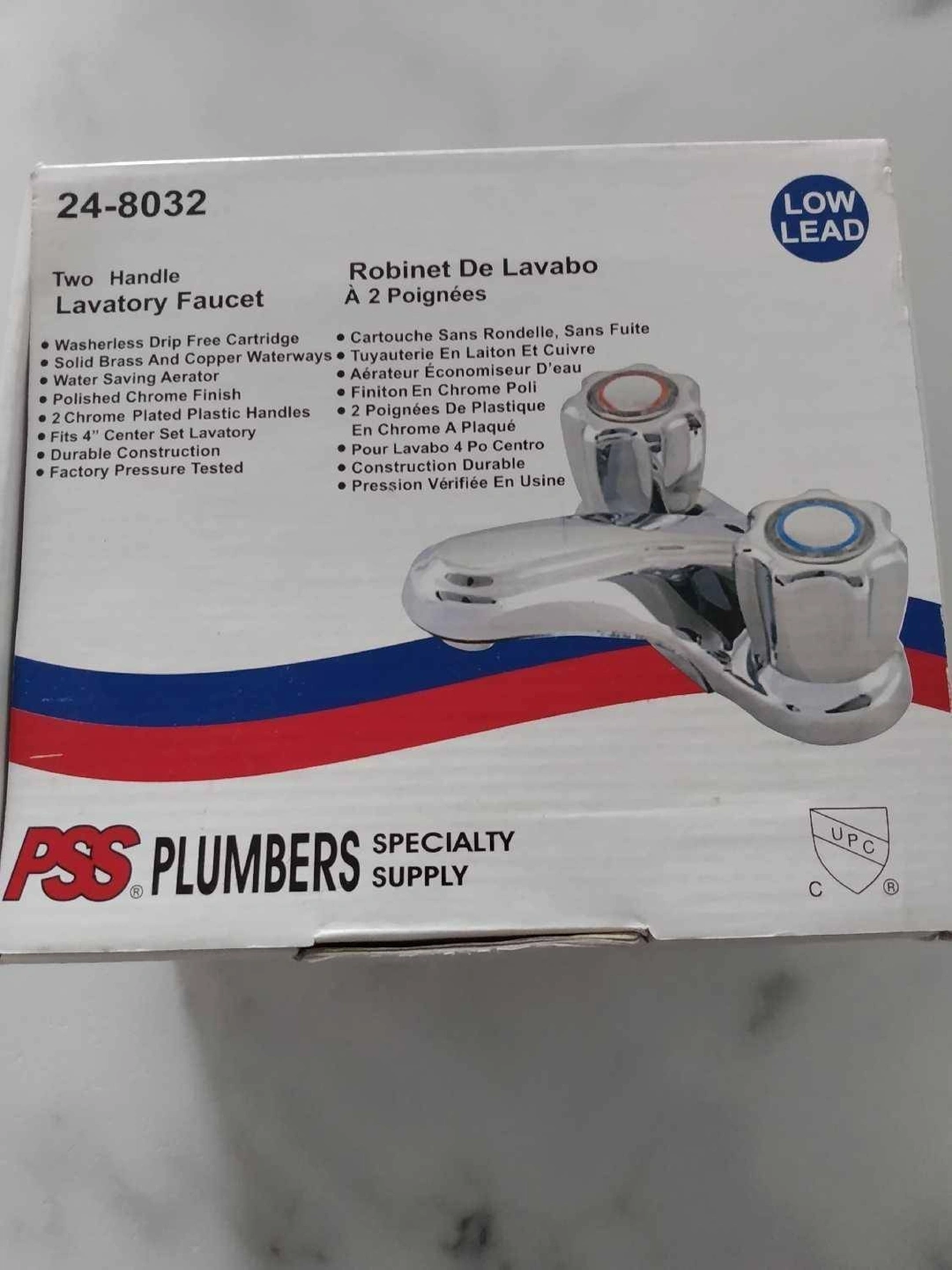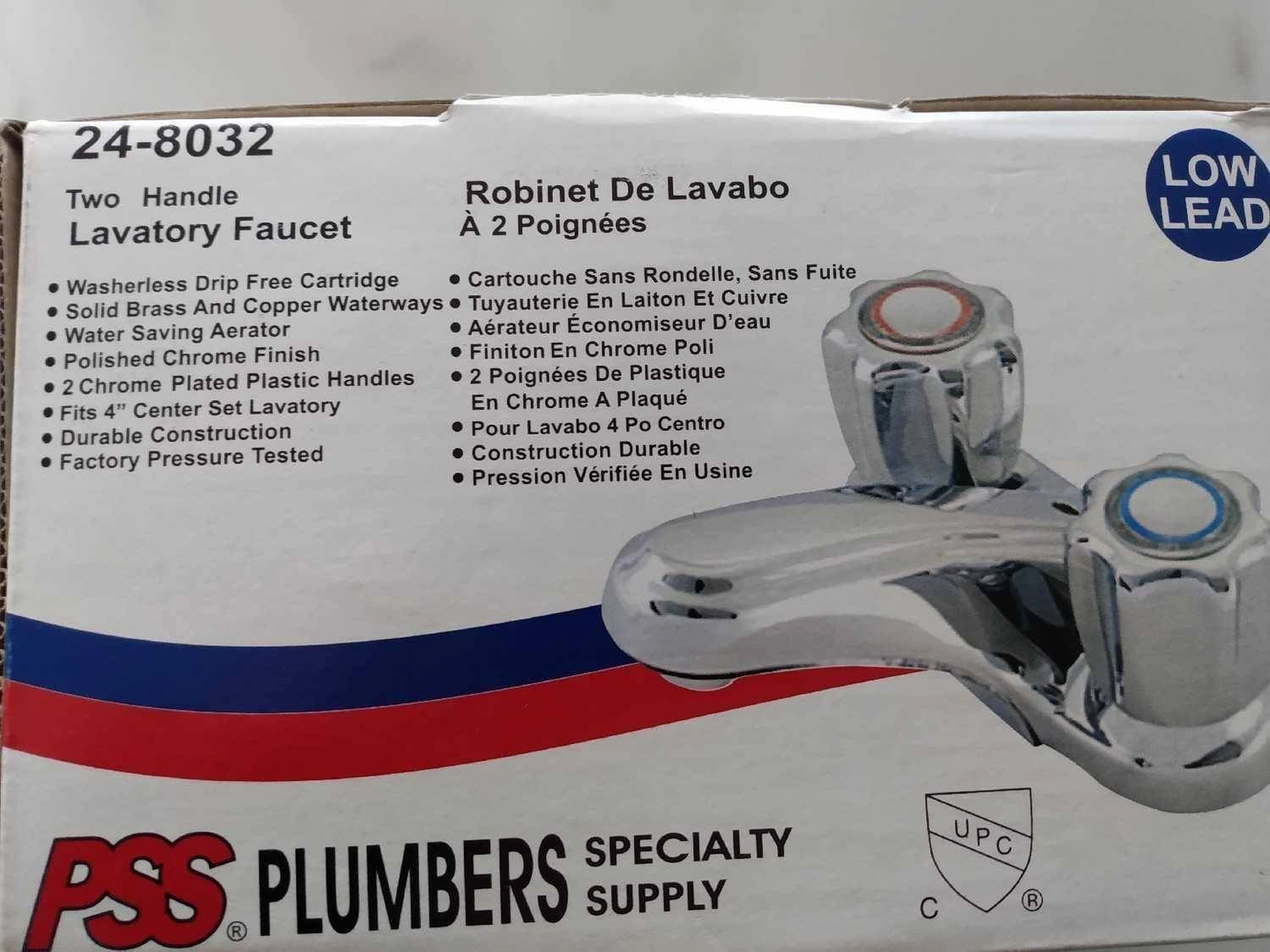 Selling a brand new PSS Two Handle Lavatory Faucet, model 24-8032! It features:
