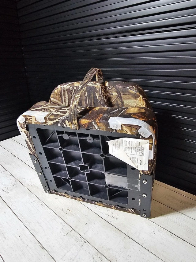 New, standard low-back fishing boat seat suitable for various applications. Durable construction with aluminum no-pinch hinges and an injection-molded high-impact plastic frame. Features compression foam padding and heavy-duty marine-grade 28 oz. vinyl for comfort and weather resistance. Includes mounting fasteners for any standard BIA 4-bolt pedestal system or seat swivel. Dimensions: Seat height: 19 inches, width: 16 inches, depth: 16 inches, seat depth: 14 inches. For Sale By: Owner.