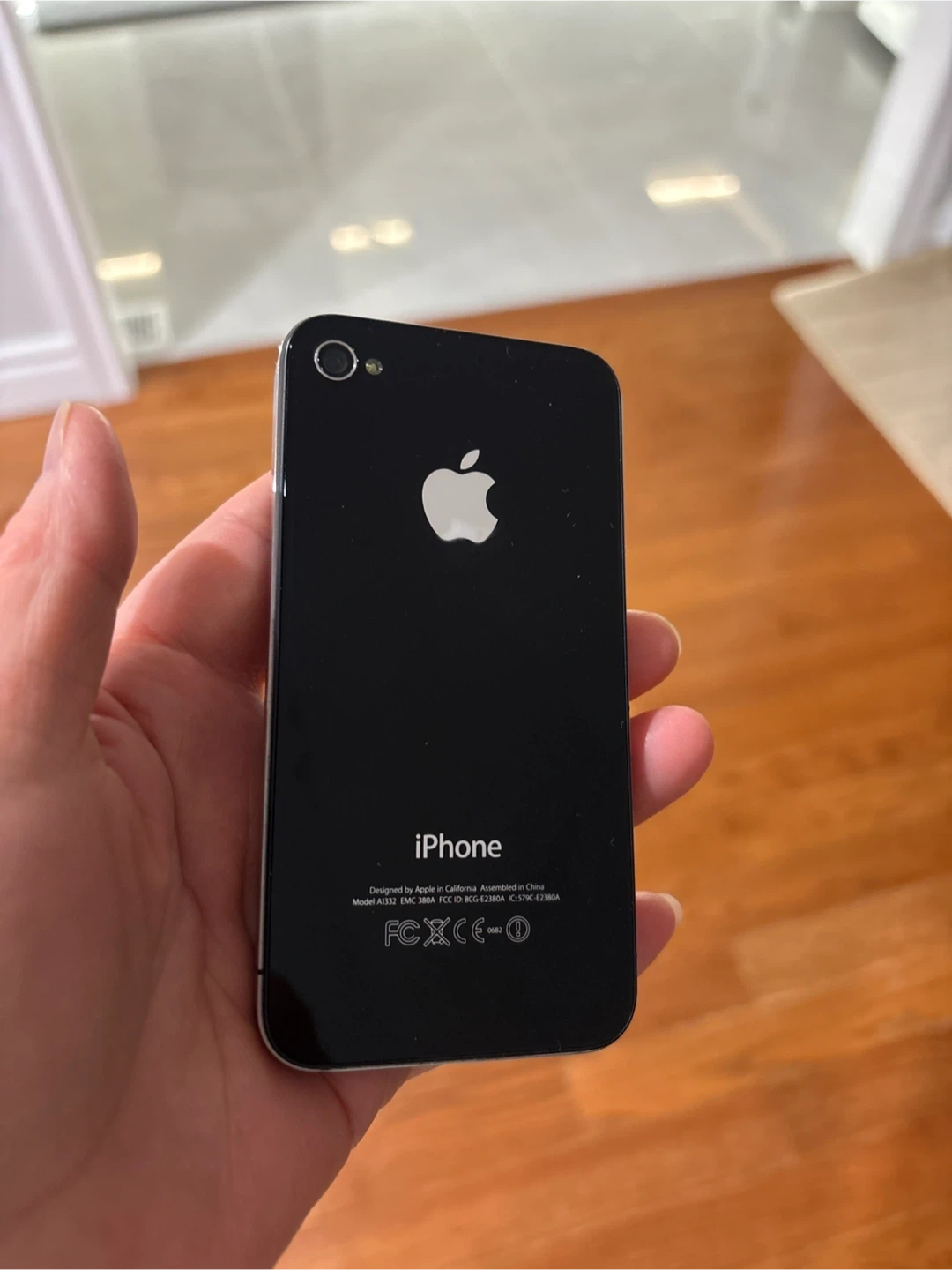 Selling an Apple iPhone 4 in black with 32GB of storage. It comes with the original box and is in great condition. Model number is A1332. Designed by Apple in California. Don't miss out!