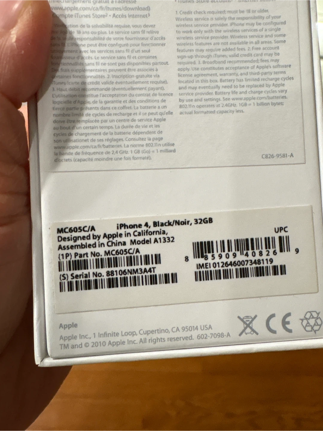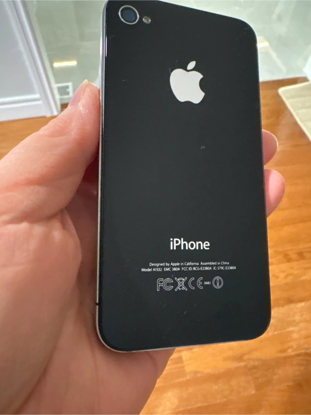 Selling an Apple iPhone 4 in black with 32GB of storage. It comes with the original box and is in great condition. Model number is A1332. Designed by Apple in California. Don't miss out!