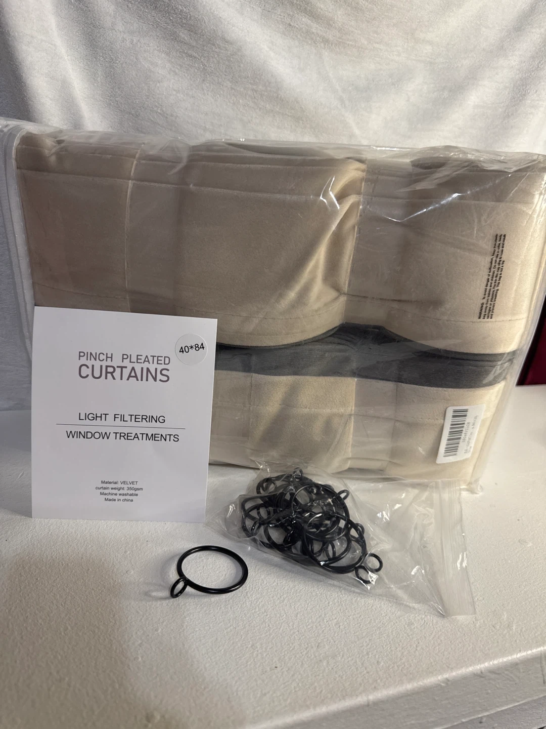 These pinch pleated curtains are made of velvet material. They are light filtering and machine washable. Includes hooks and back tabs for hanging. Provides thermal insulation.