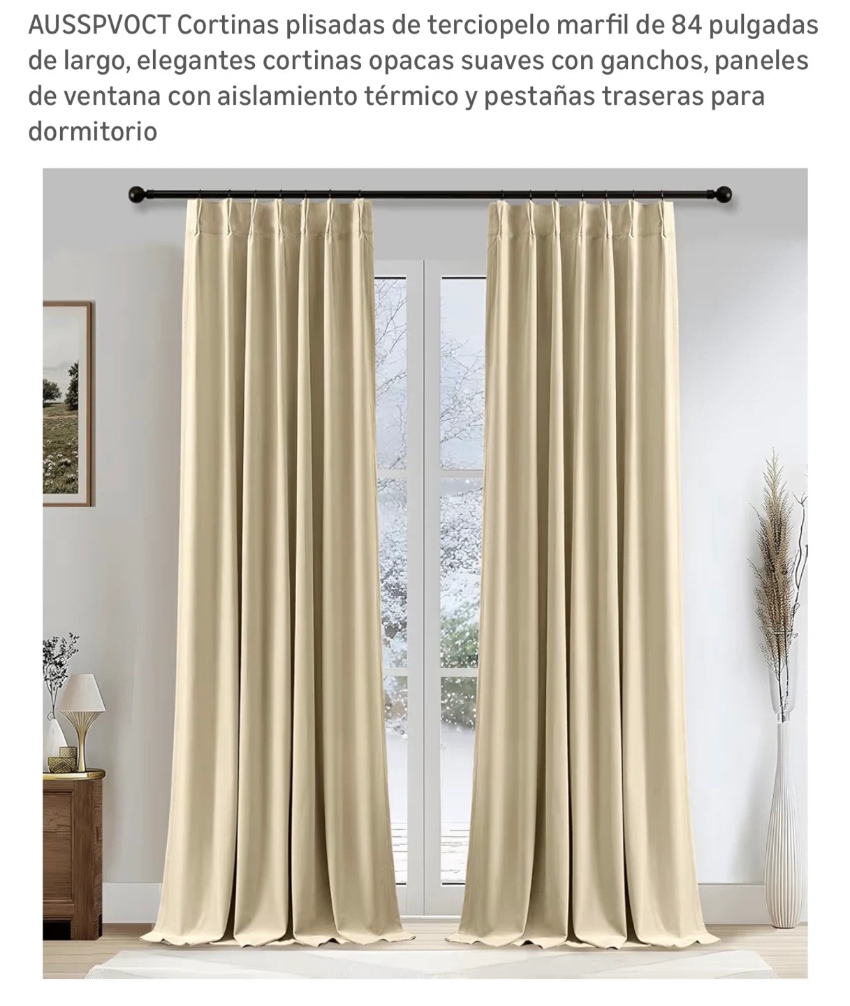 Estas cortinas plisadas de pellizco están hechas de material de terciopelo. Son de filtro ligero y lavables a máquina. Incluye ganchos y pestañas traseras para colgar. Proporciona aislamiento térmico.