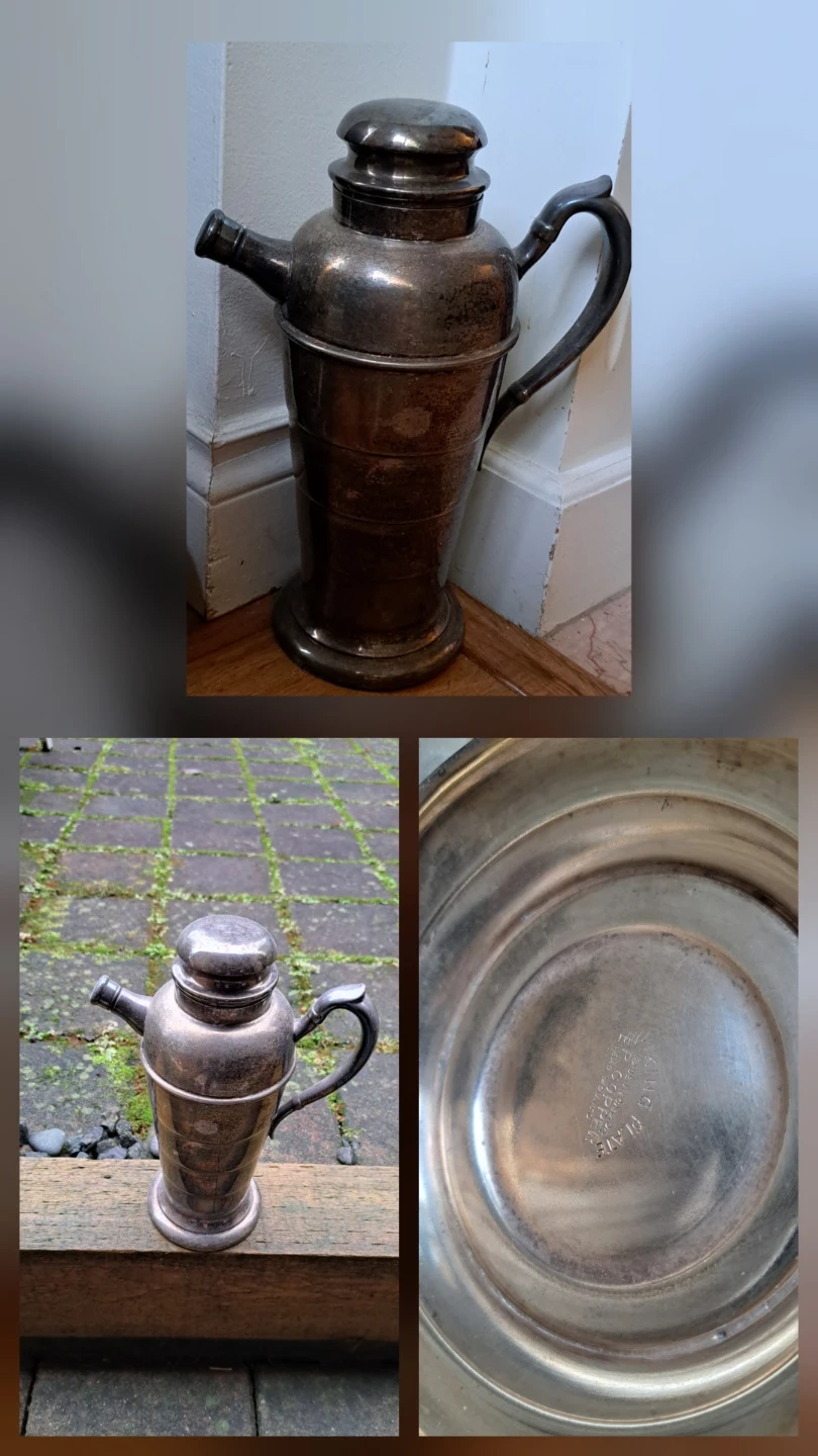 Selling a vintage cocktail shaker made by King Plate E.P. Copper. It's a beautiful piece with a classic design, perfect for adding a touch of elegance to your home bar or collection. It shows some signs of wear consistent with its age, but it's still a functional and stylish item!