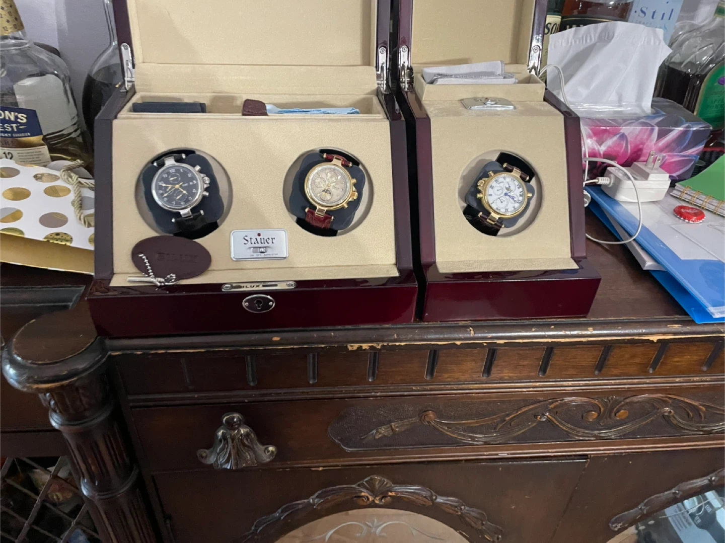 Selling a Stauer watch winder that can hold up to three watches! It's in great condition and perfect for keeping your automatic watches wound and ready to wear