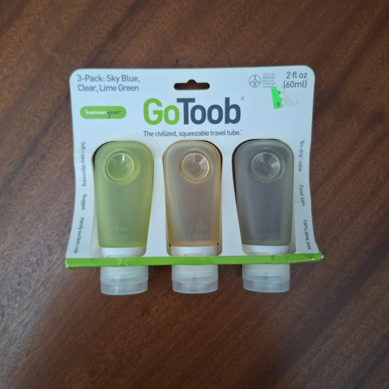 3-pack set of 2 oz travel tubes. Tubes come in sky blue, clear, and lime green.