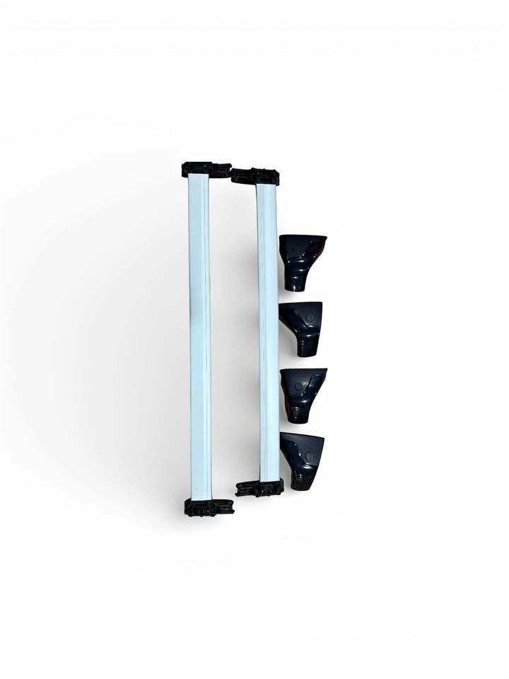 Complete roof rack system for Genesis GV70. Includes aerodynamic crossbars and all four mounting feet with vehicle-specific clamps and padding. Installed once and removed, never used — excellent condition. Ready to install. No damage or missing parts.
