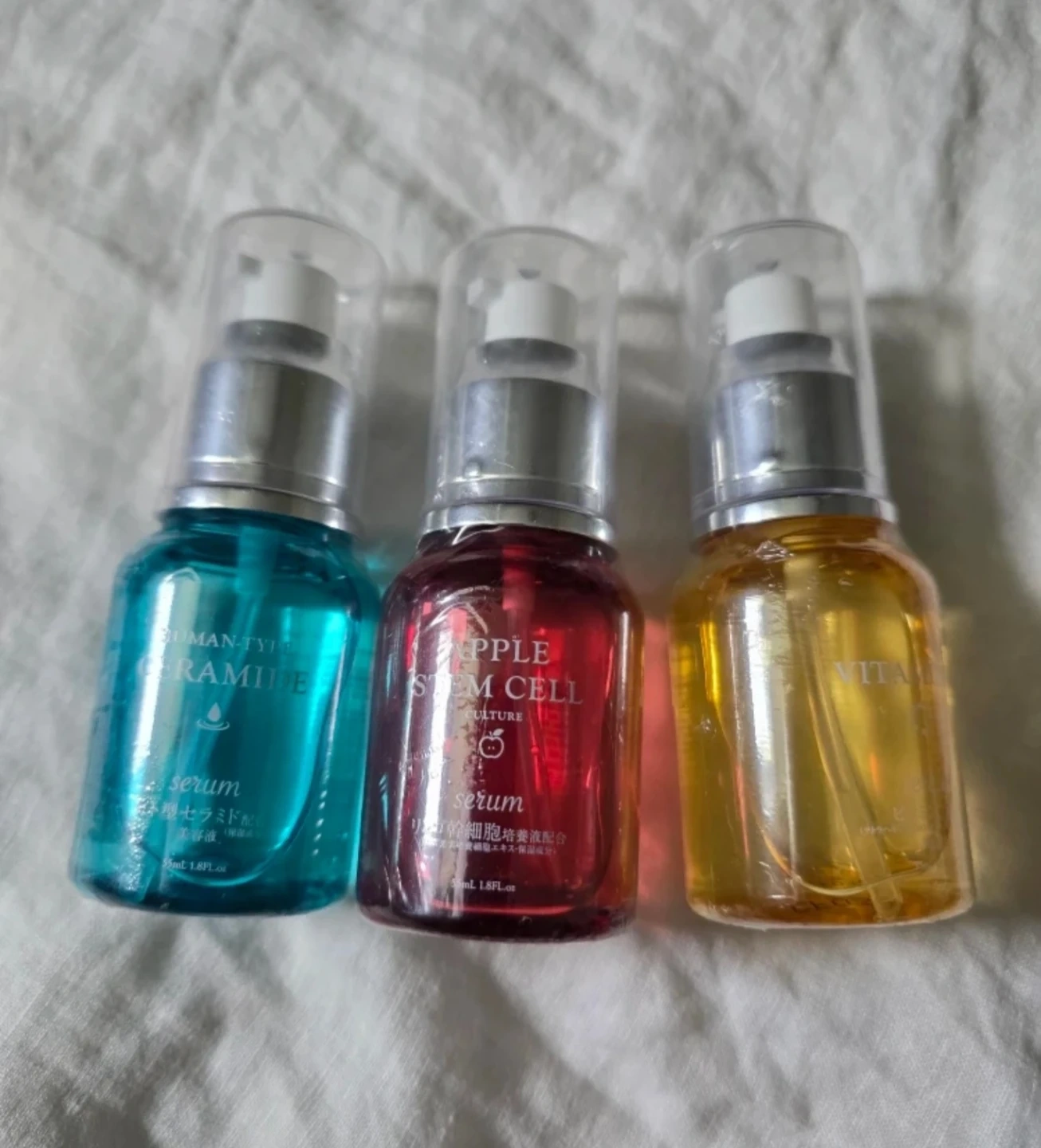 Selling a set of three serums: Vitamin C, Human-Type Ceramide, and Apple Stem Cell Culture serum