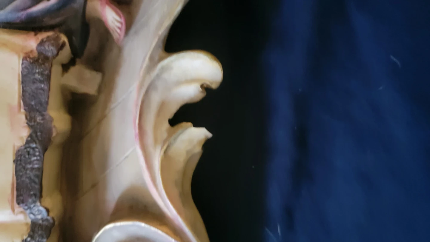 In good condition. Small chip at the bottom of one of the decor parts on the rear. Not noticeable in the front.