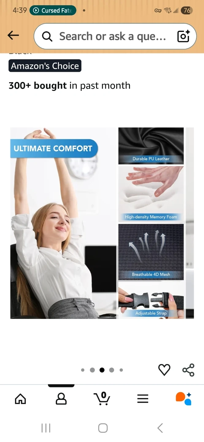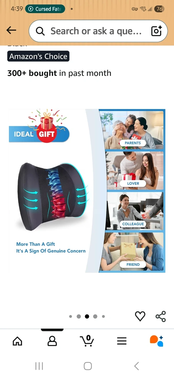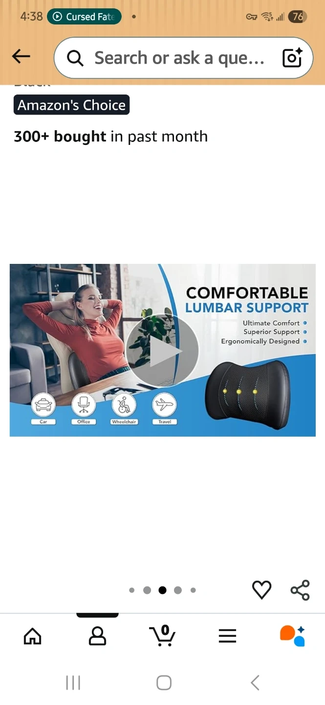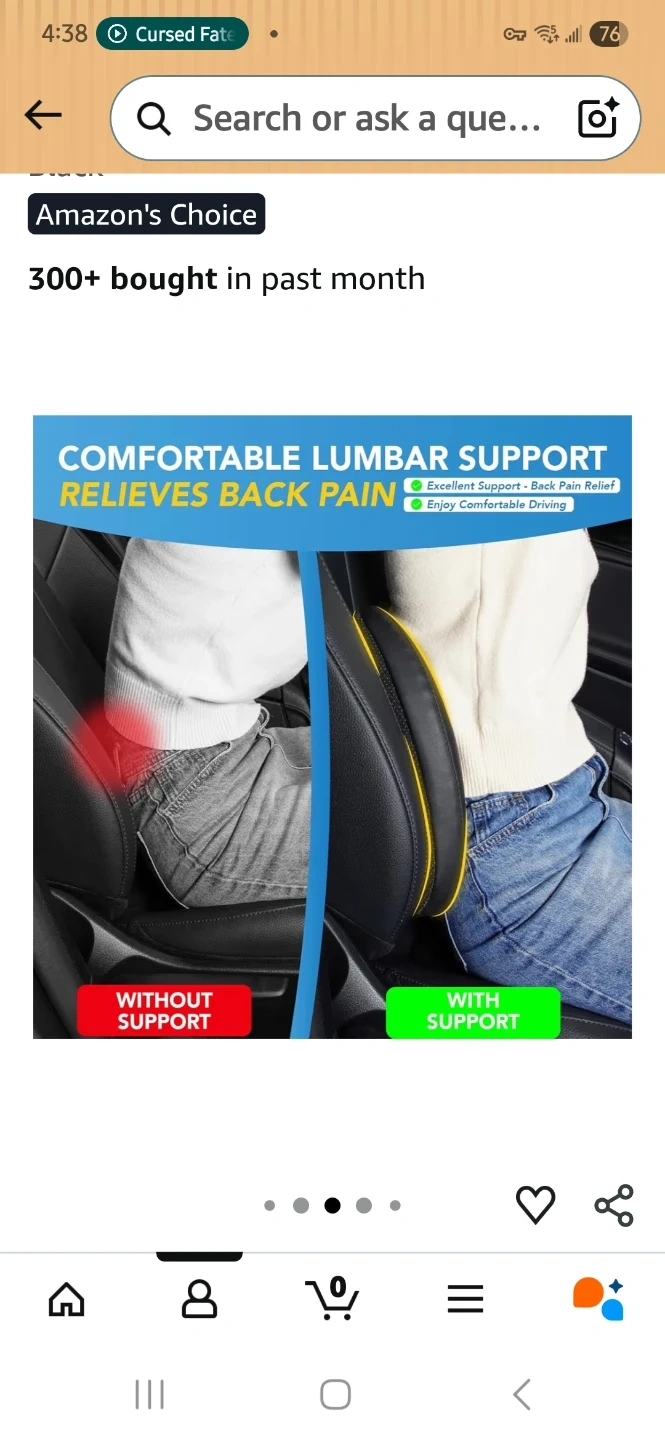 Comfortable black lumbar support pillow with textured fabric and faux leather trim. Features straps on the back for attachment to car seats. Provides support during long drives or while sitting in a chair.