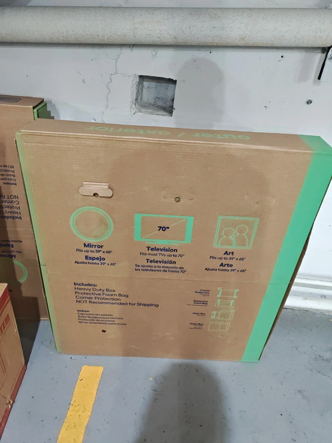 This is a "Large" sized picture box frame for a 70" television. It fits most TVs up to 70 inches and can also be used as an art frame. Includes heavy duty box, foam , and corner protection.
