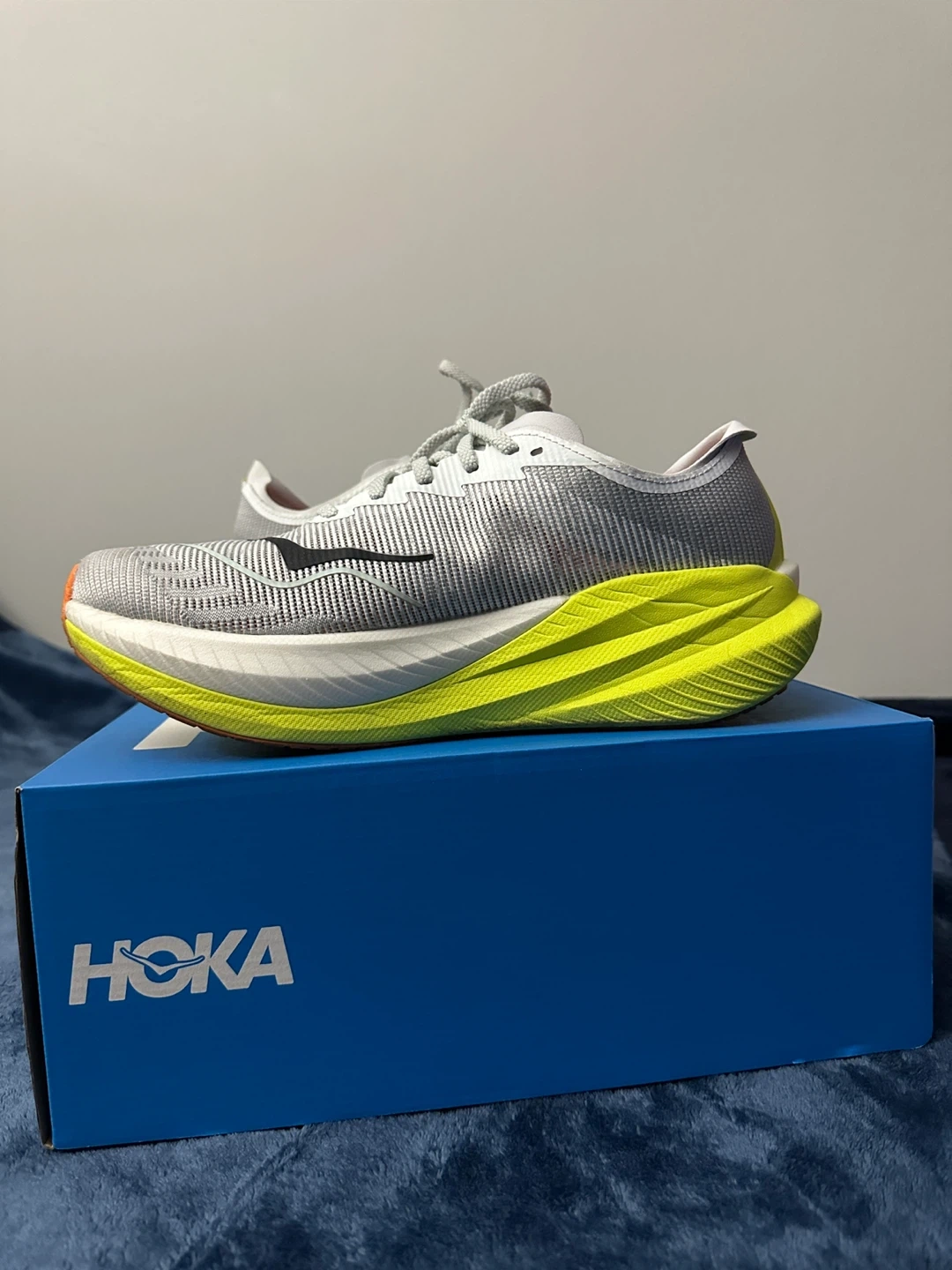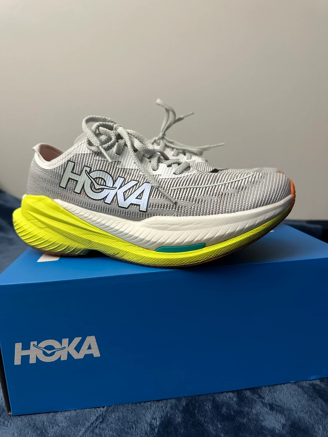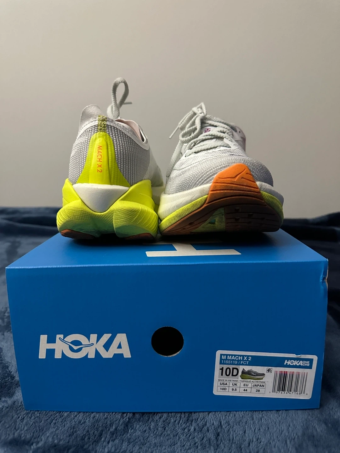 Selling a pair of Hoka Mach X 2 running shoes in size 10D! These shoes are in great condition and come with the original box. The Mach X 2 are known for their responsive cushioning and smooth ride, making them perfect for daily training or tempo runs. They feature a lightweight design and a breathable upper to keep your feet comfortable during your workouts