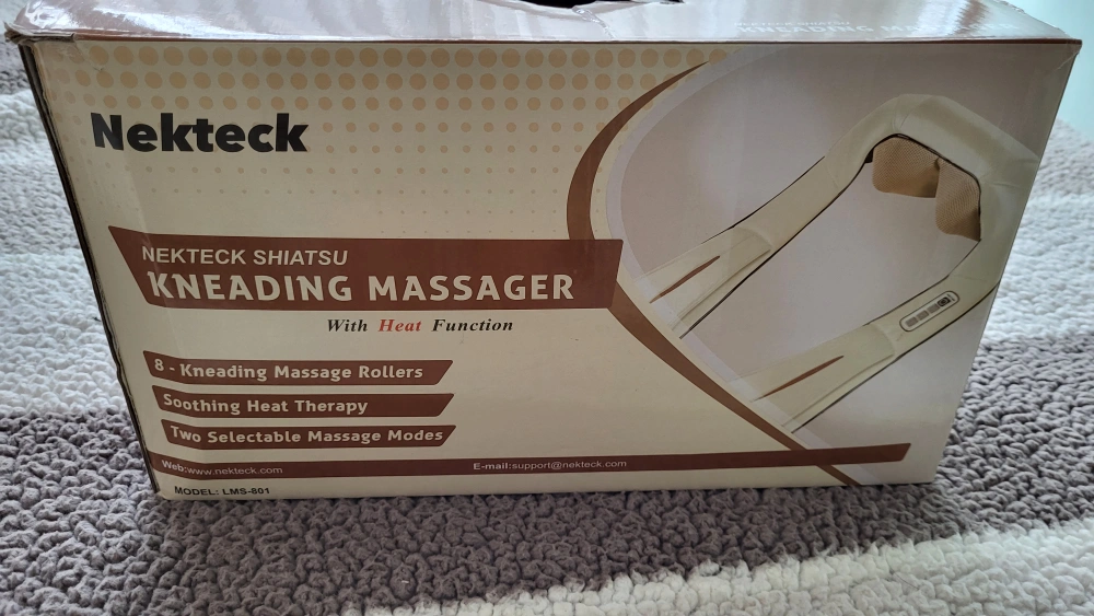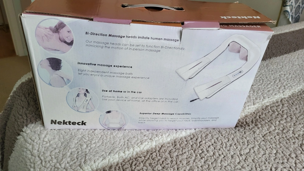 I'm selling a Nekteck Shiatsu Kneading Massager with Heat Function. It has 8 kneading massage rollers and soothing heat therapy. It also has two selectable massage modes. It can be used at home or in the car. It comes with both AC and car adapters