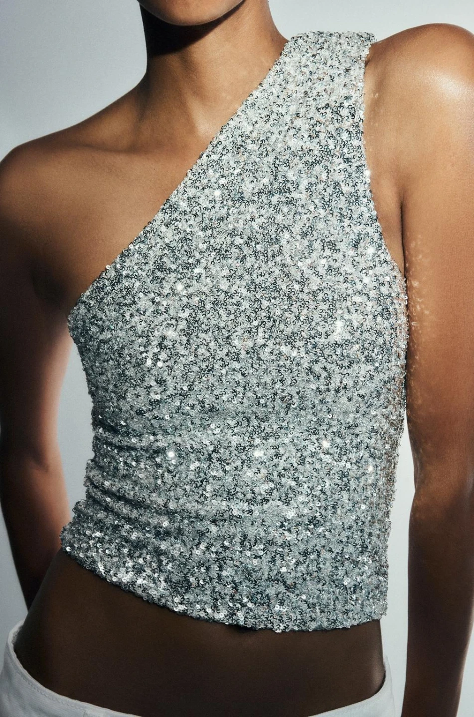 ZARA Sequin One-Shoulder Top - Cream Color
