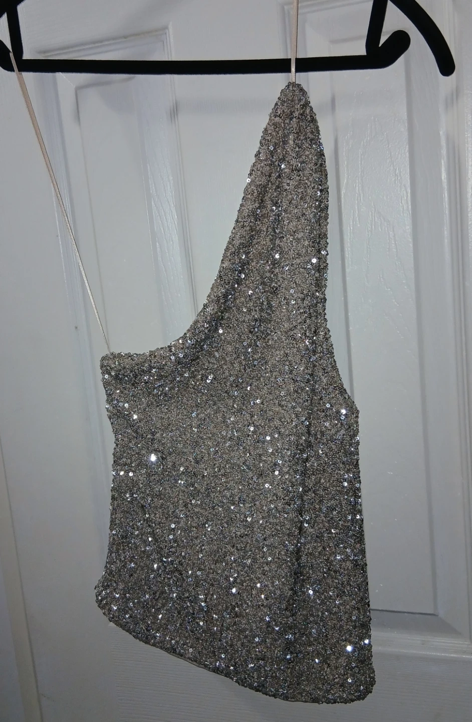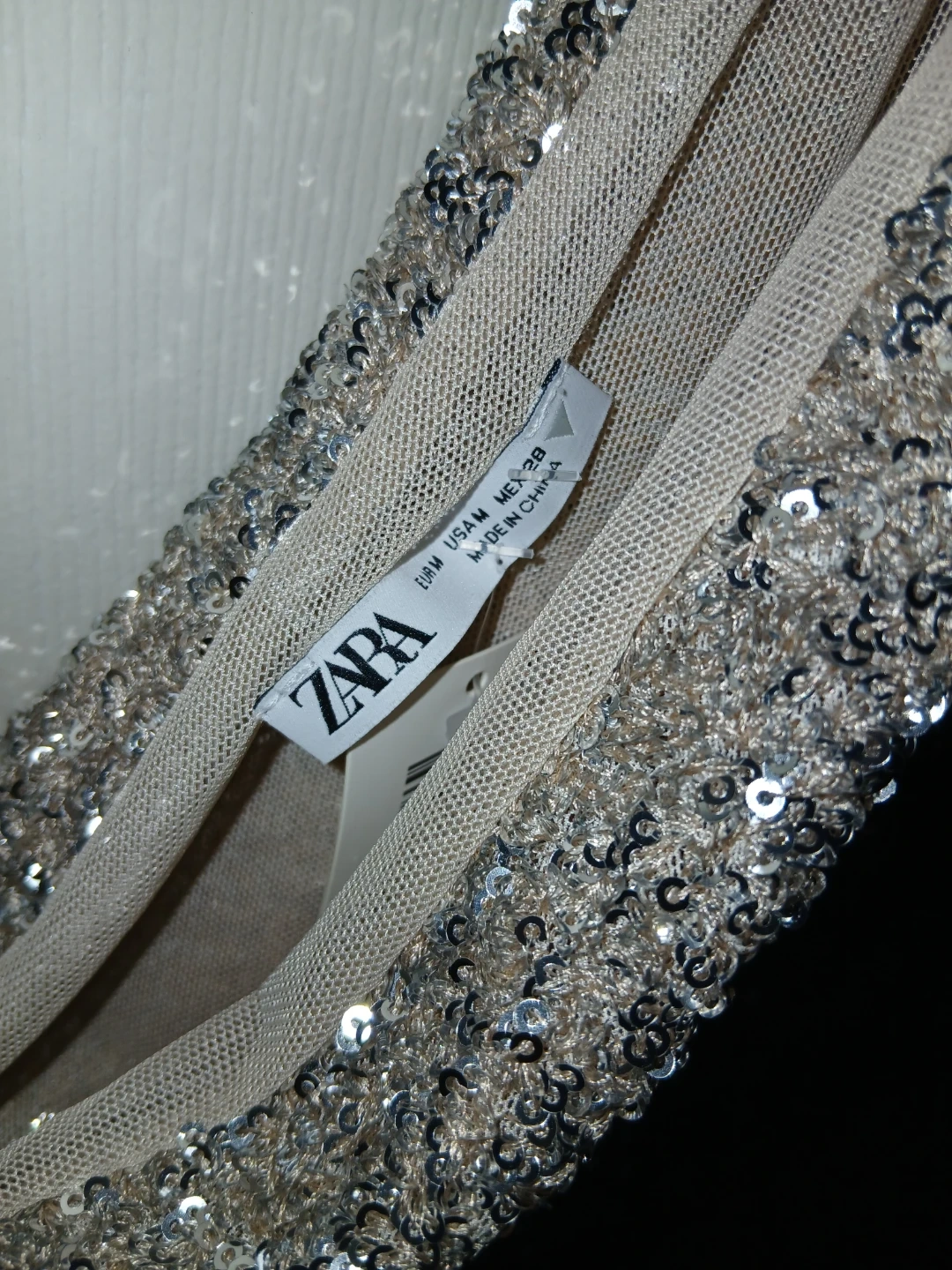 Sparkly sequin top from ZARA with a one-shoulder design in a beautiful cream color. Size medium.