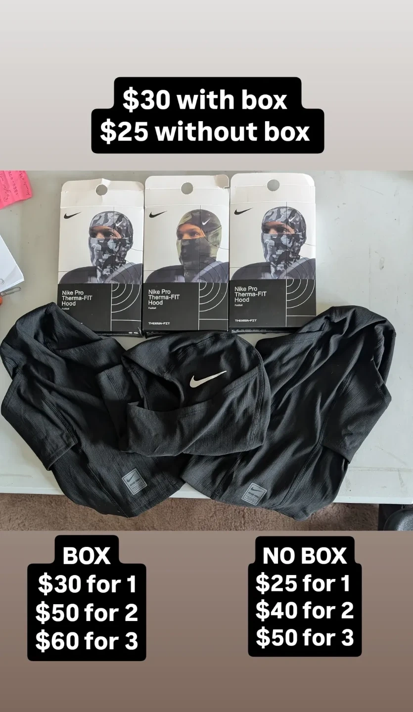 These Nike Pro Therma-FIT hoods offer thermal performance. They're made with Therma-FIT material for warmth. Great for outdoor activities in cooler weather.