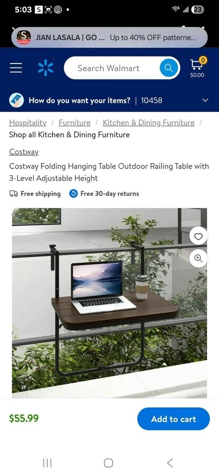 FOLDING HANGING TABLE OUTDOOR RAILING TABLE WITH 3 LEVEL