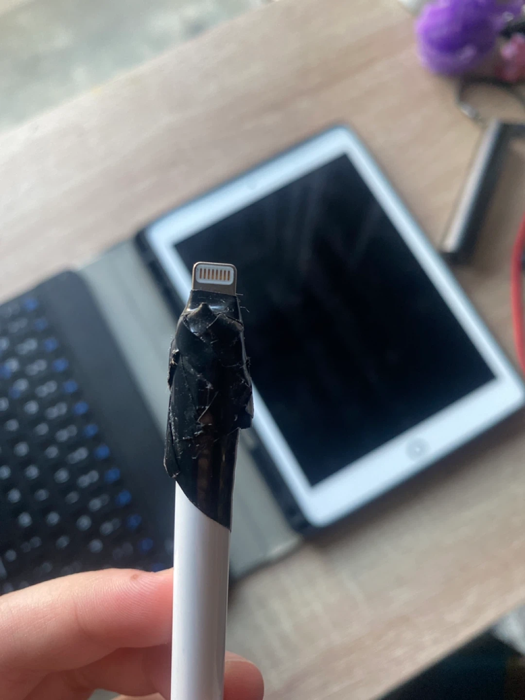 BANKVIEW CALGARY AREA - Apple iPad tablet paired with a black Bluetooth keyboard case. Includes an Apple Pencil with visible damage to the charging end, wrapped in black tape to secure it, but it still charges fine and works fine. ipad is fully reset and ready to go. doesnt come with pencil accessories or chargers etc. exactly how shown in photos. ipad runs great, older model so it does die a little faster than new ones but still lasts about 4 hours before it needs to be plugged in