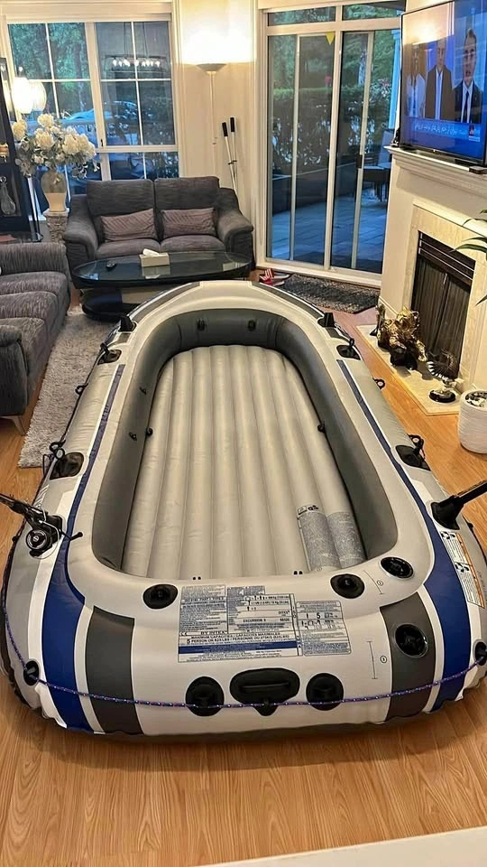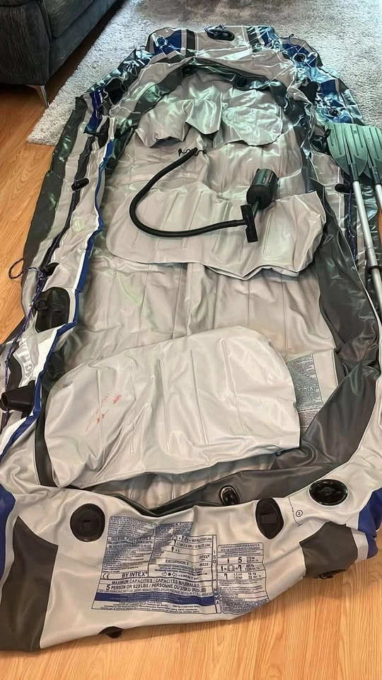 Used it a few times on lakes and once at English Bay. Includes everything that comes in the box. The bag tore while getting it out of storage, but it's available if you can stitch it. The life jackets have been used once, so they are practically new. It inflates well and comes with a manual pump. It had 2 small dings that have been professionally sealed and comes with extra sealing tape. Pick up in Port Moody.