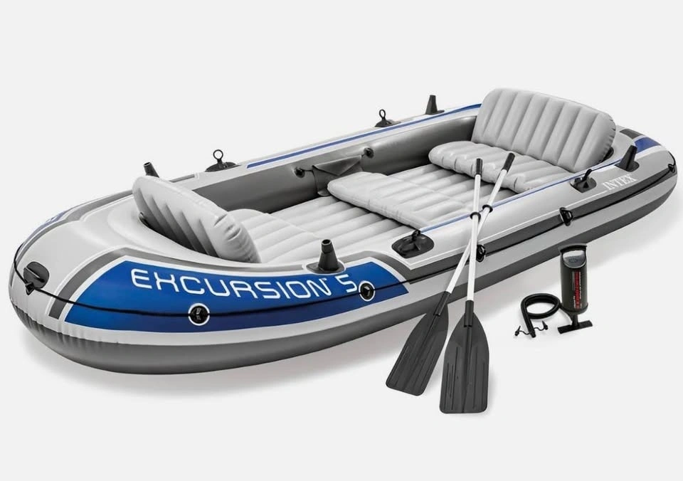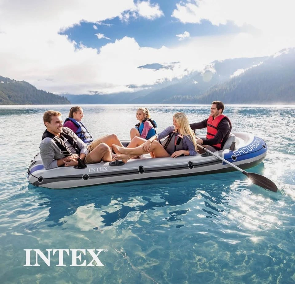 Intex Excursion 5 Person Inflatable Boat + 3 Life Jackets