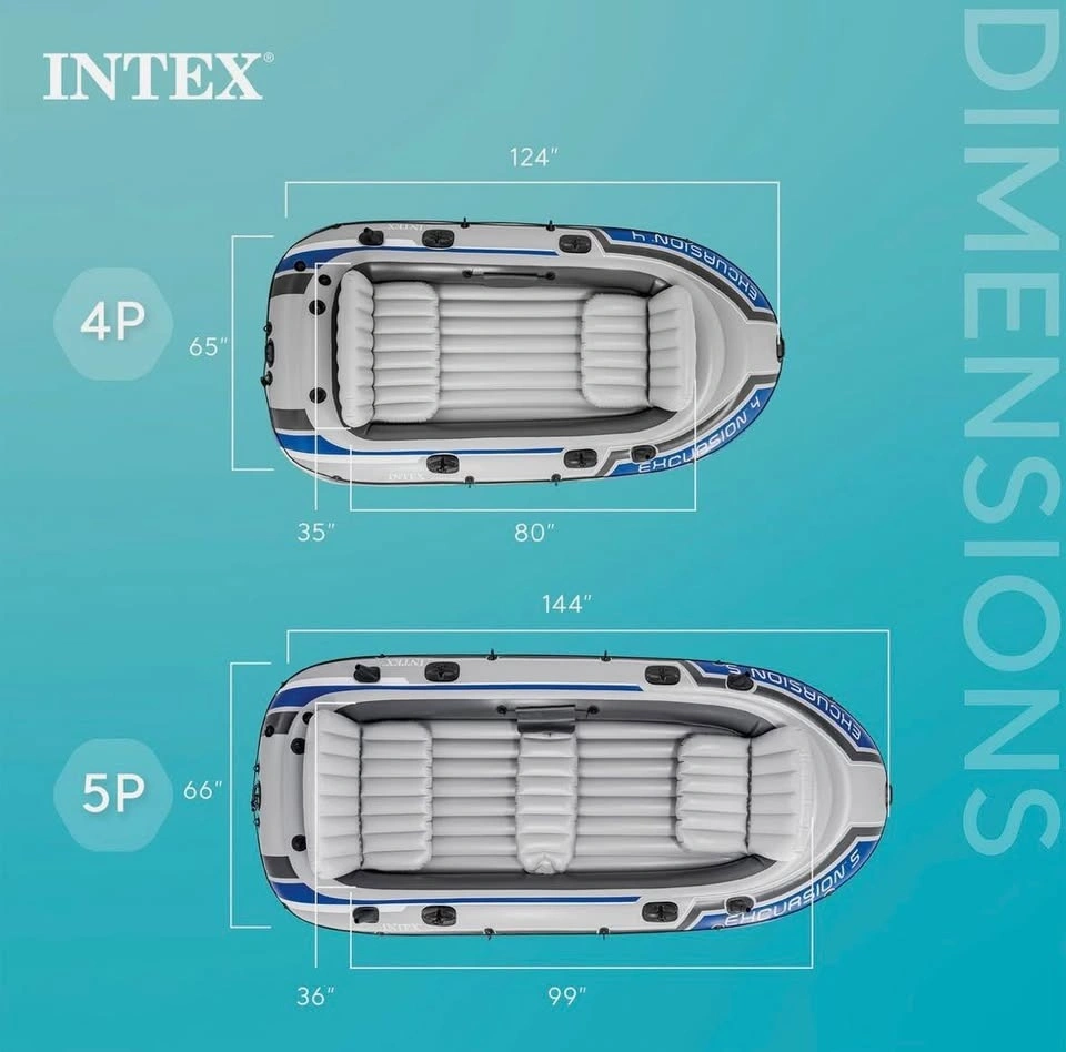 Intex Excursion 5 Person Inflatable Boat + 3 Life Jackets