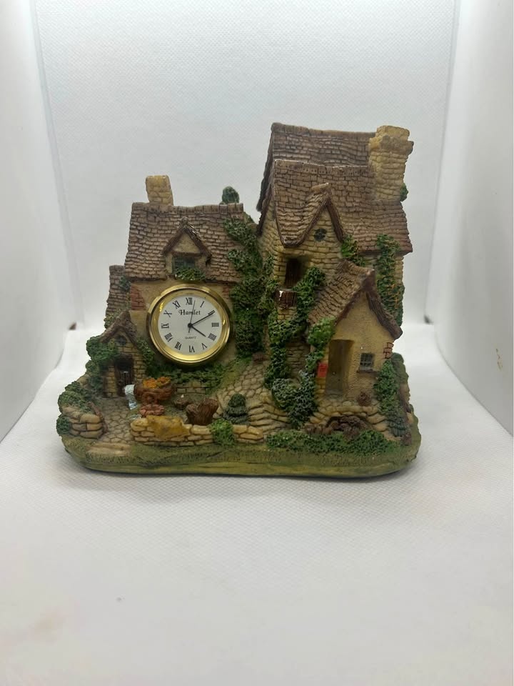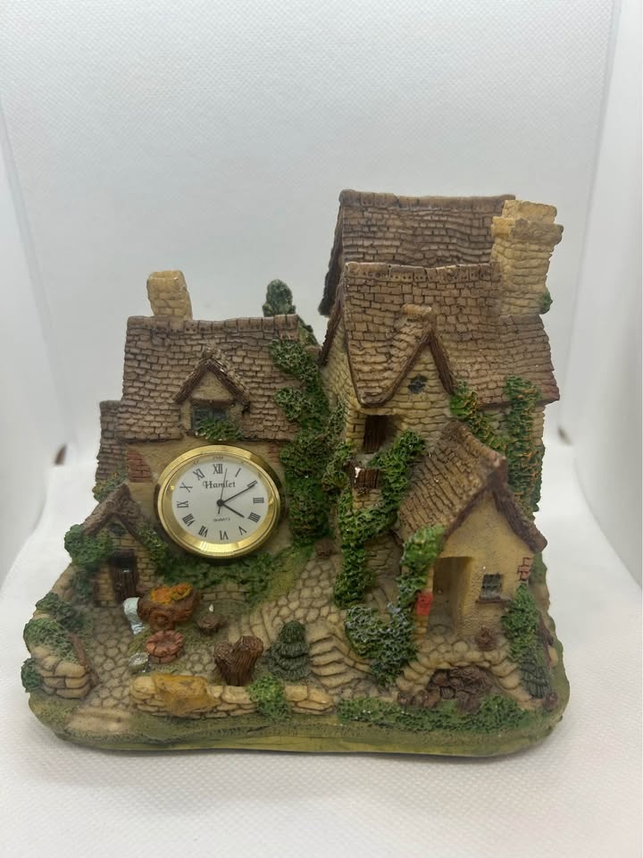 Add a touch of storybook charm to your space with this vintage Hamlet desk clock. Crafted from resin and styled as a rustic English cottage, it features a working quartz movement with Roman numerals. Ideal for collectors or as a unique décor piece for your desk, shelf, or mantel.
