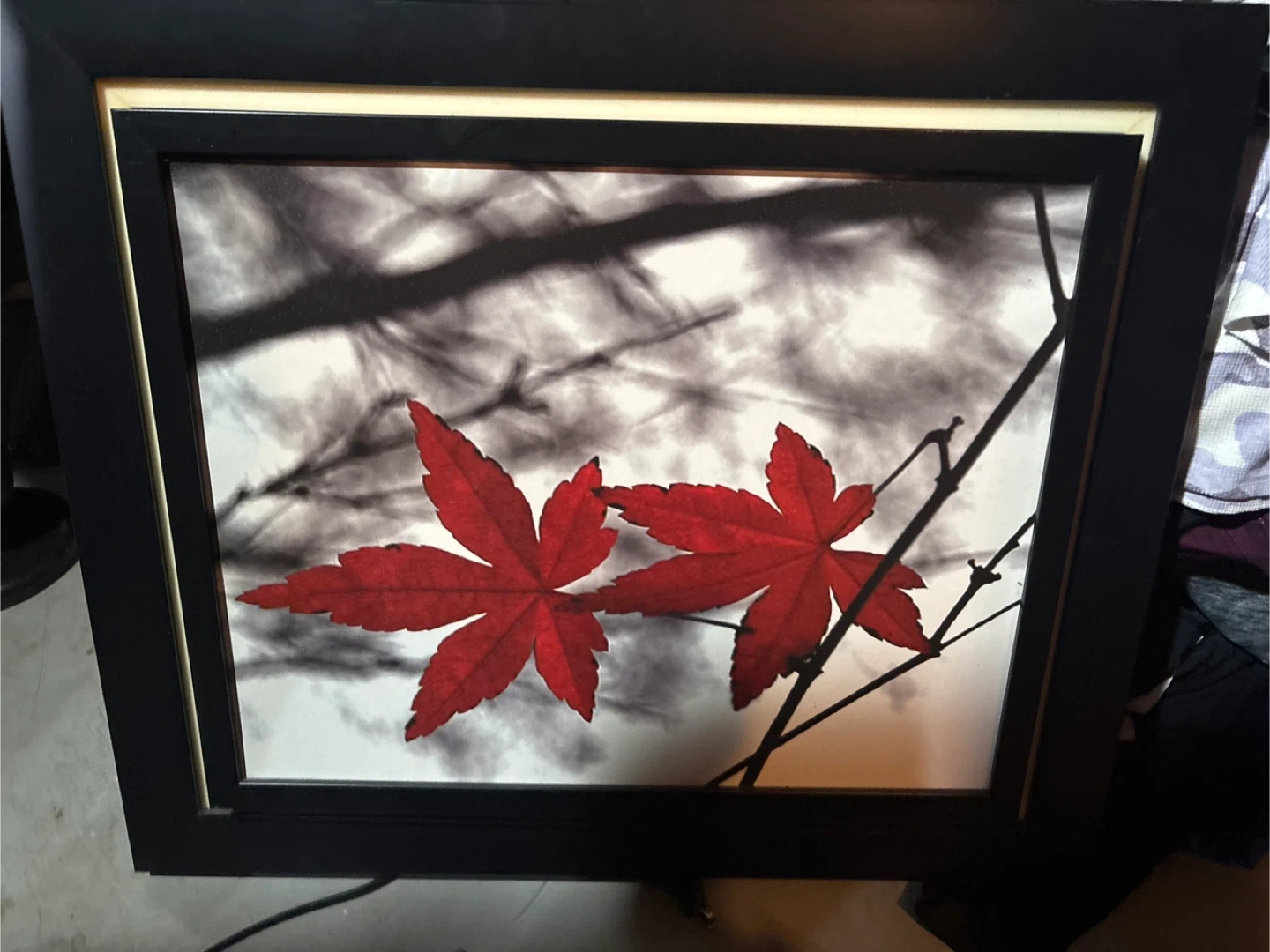 Framed Artwork with Red Maple Leaves