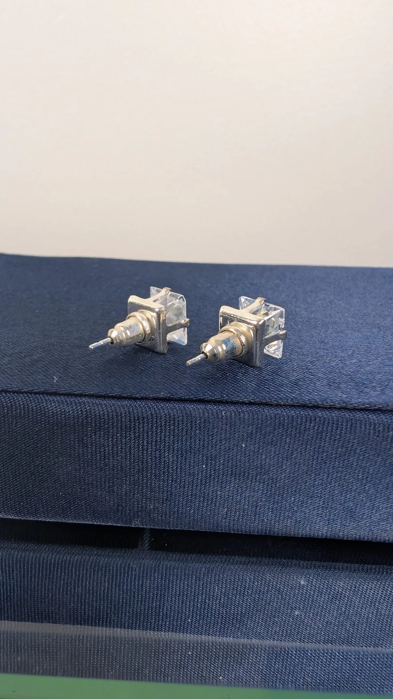Sparkly square cut stud earrings in a classic design. These earrings are great for adding a touch of shine to any outfit.