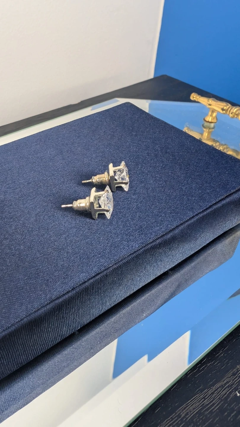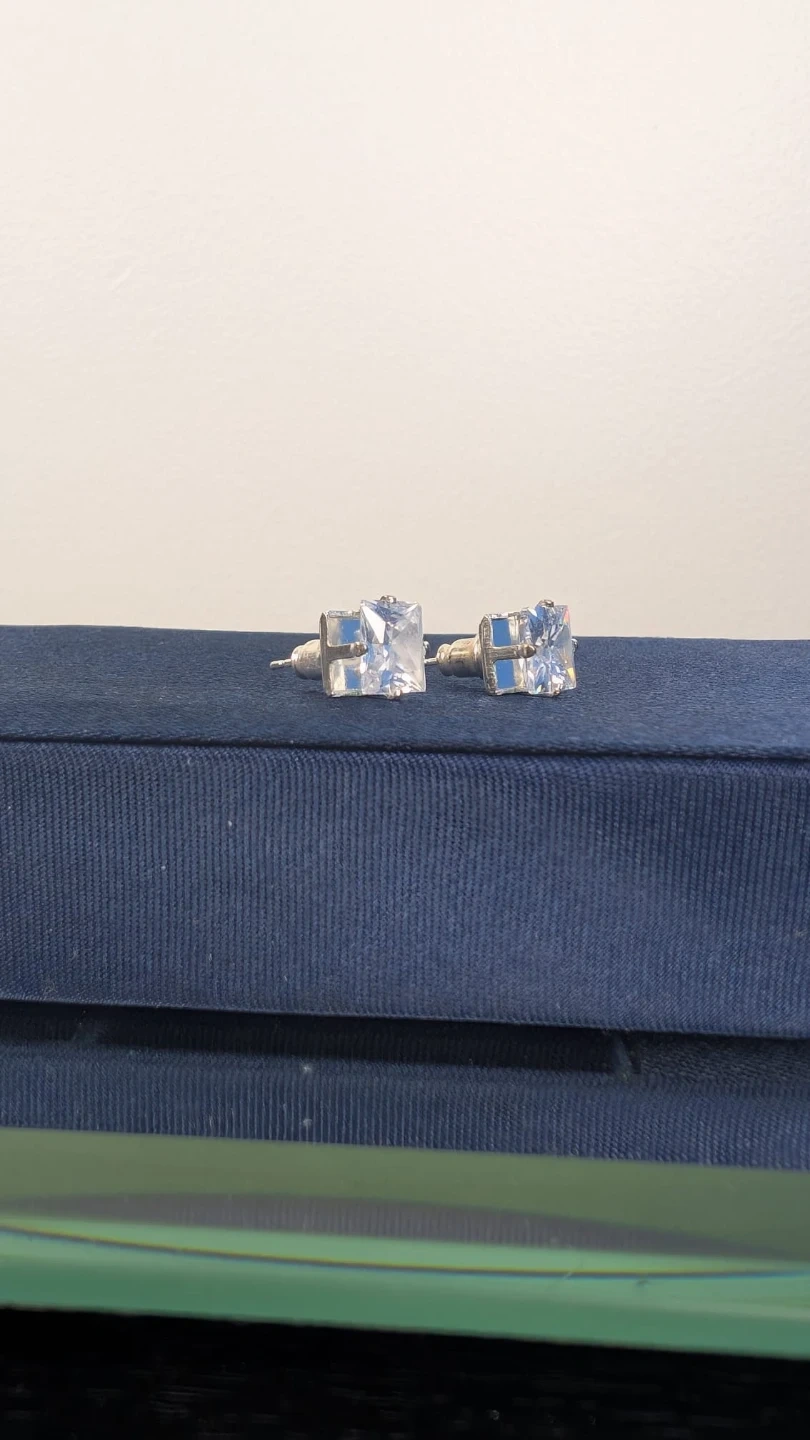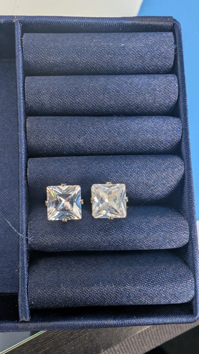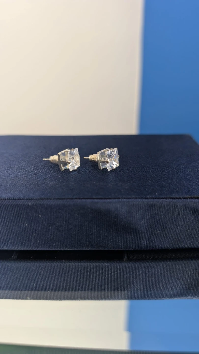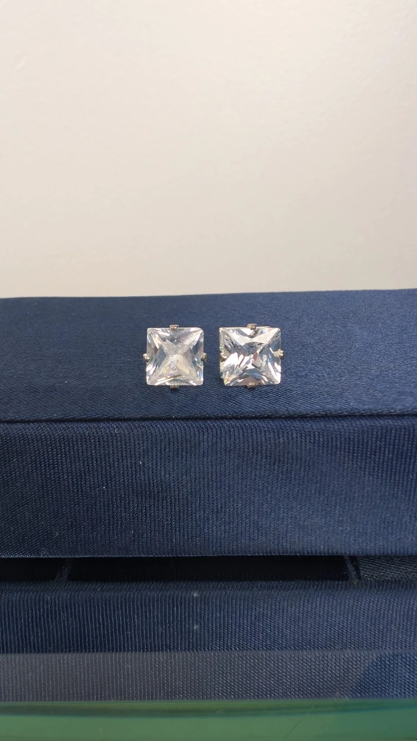 Sparkly square cut stud earrings in a classic design. These earrings are great for adding a touch of shine to any outfit.