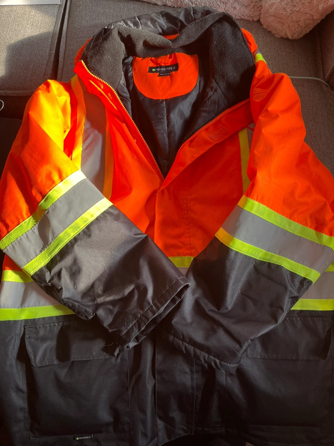 Selling a Forcefield hi-vis safety jacket in size 2XL. It's in great condition and ready for use. The jacket features a vibrant orange colour with reflective stripes for enhanced visibility. Perfect for work or outdoor activities where safety is a priority! Has only been worn a few times, very warm in winter. Has a quilt lined hood. Worn only a few times. Used for visibility on movie sets (no labour) so it is practically brand new.
