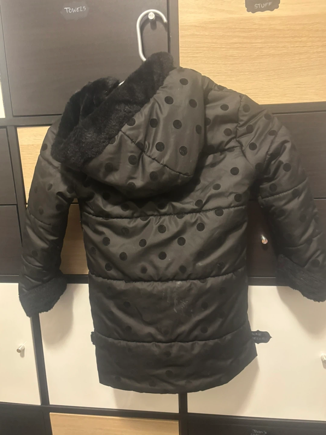 Selling a gently used IZOD puffer coat for kids! It's a size 5 and features a cute black polka dot pattern. Perfect for keeping your little one warm and stylish during the colder months.