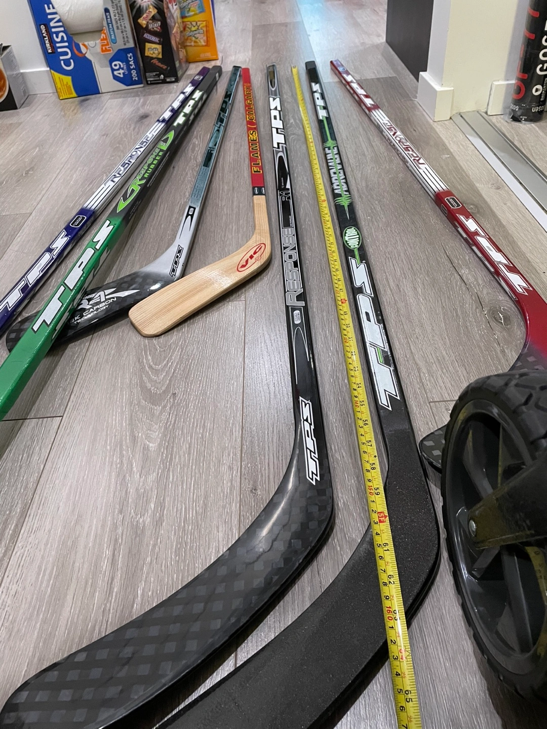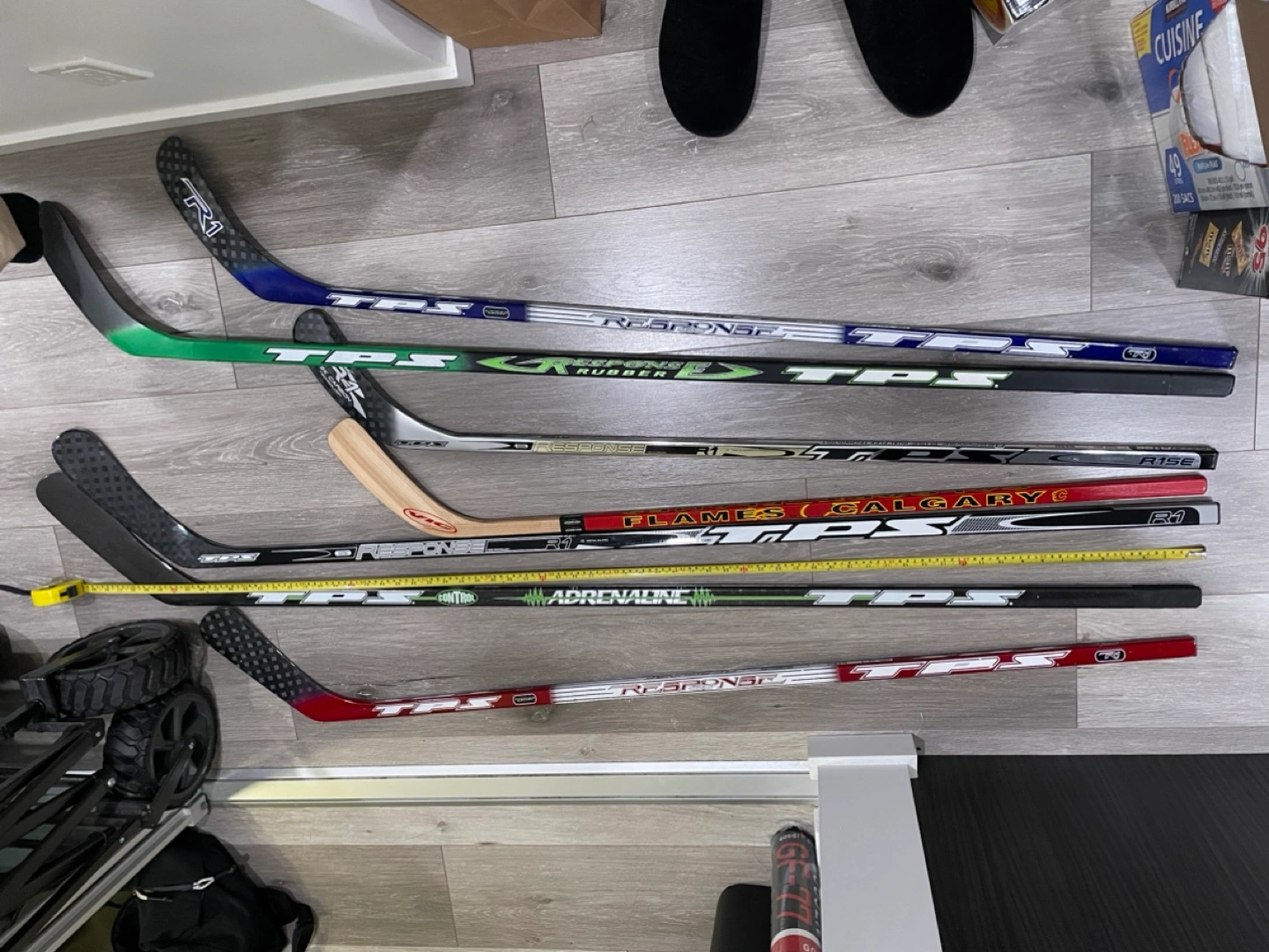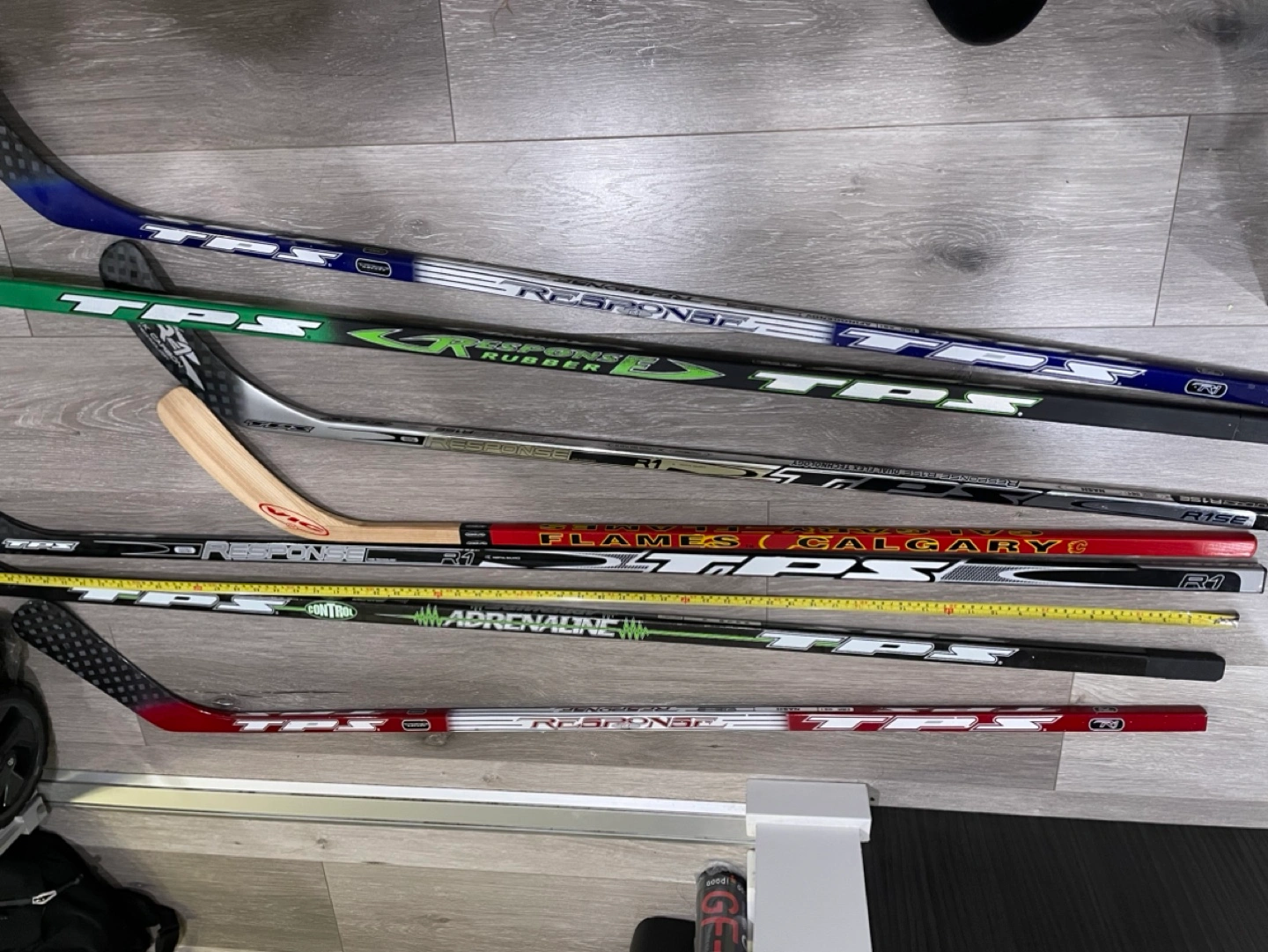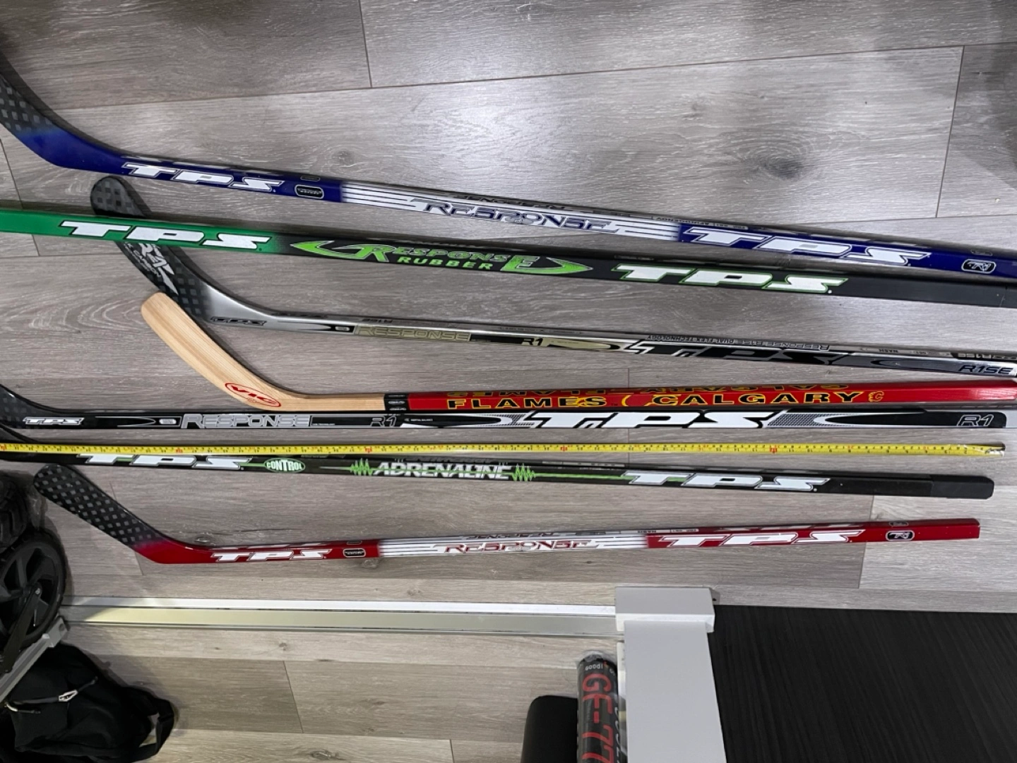 Set of 7 brand new hockey sticks. Most sticks are TPS brand, but some are not.