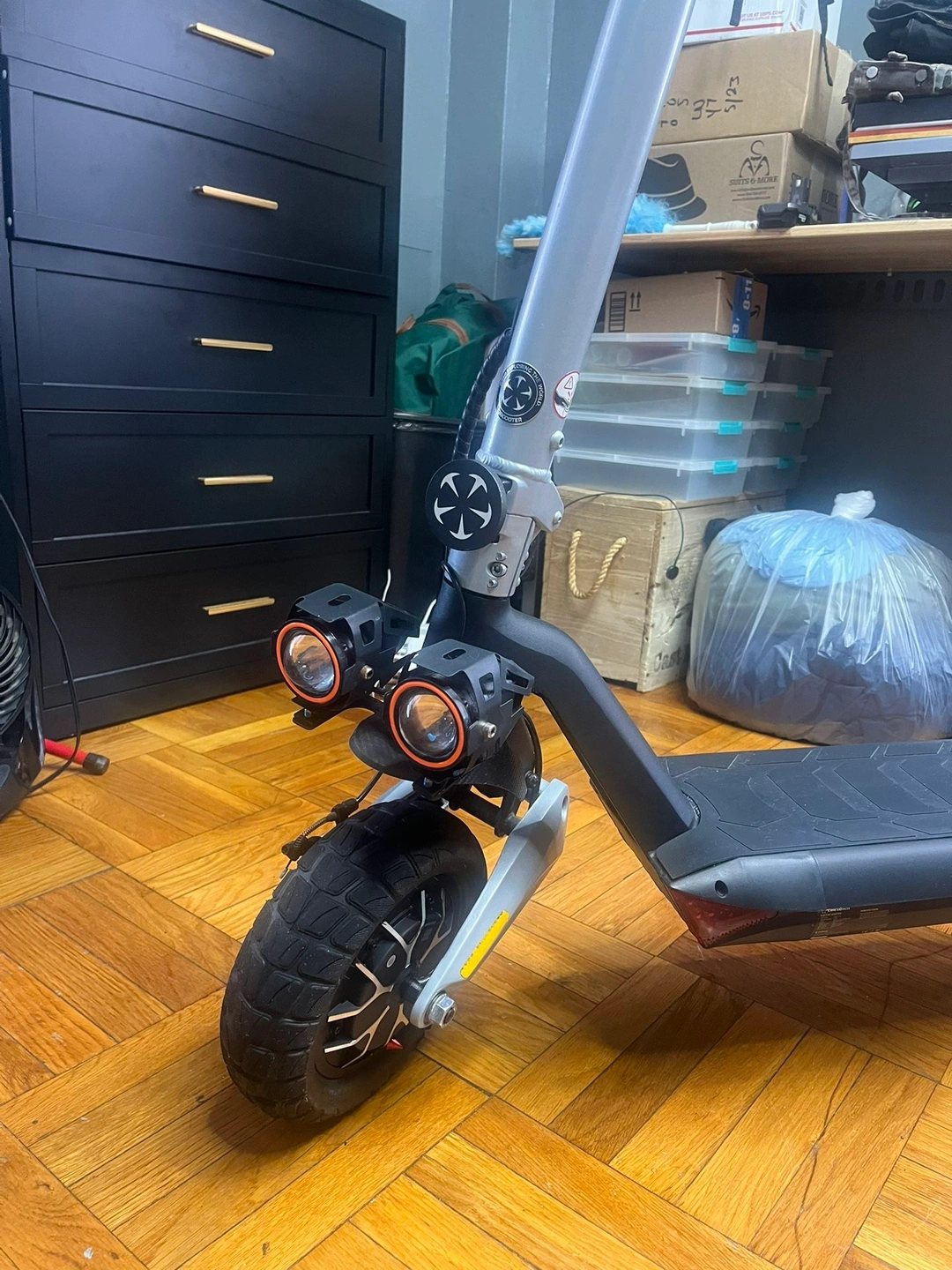 This scooter is a tank. It has a 330 Lbs capacity, three speeds, and dual 800W motors. It goes up to 48 miles on a single charge. It's waterproof, so you can ride it in the rain and snow. Barely used, like new. You can also control it with your phone by downloading the isinwheel app.