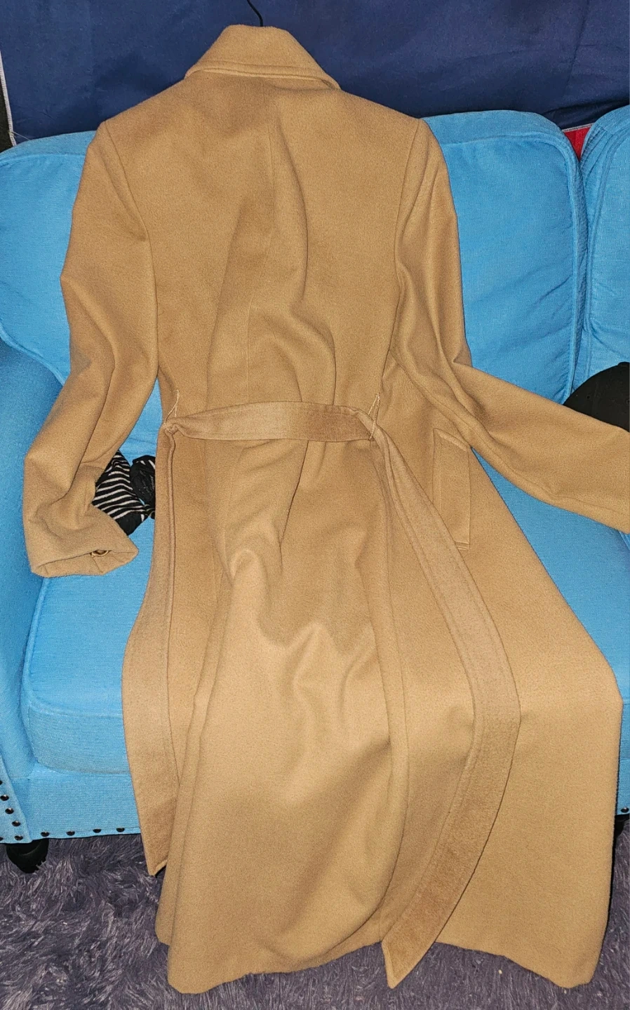 A stylish Attitude coat in a beautiful brown colour! It's a size 6 and made from a wool blend. Perfect for staying warm and looking chic during the colder months. It comes with a belt to cinch the waist for a flattering silhouette