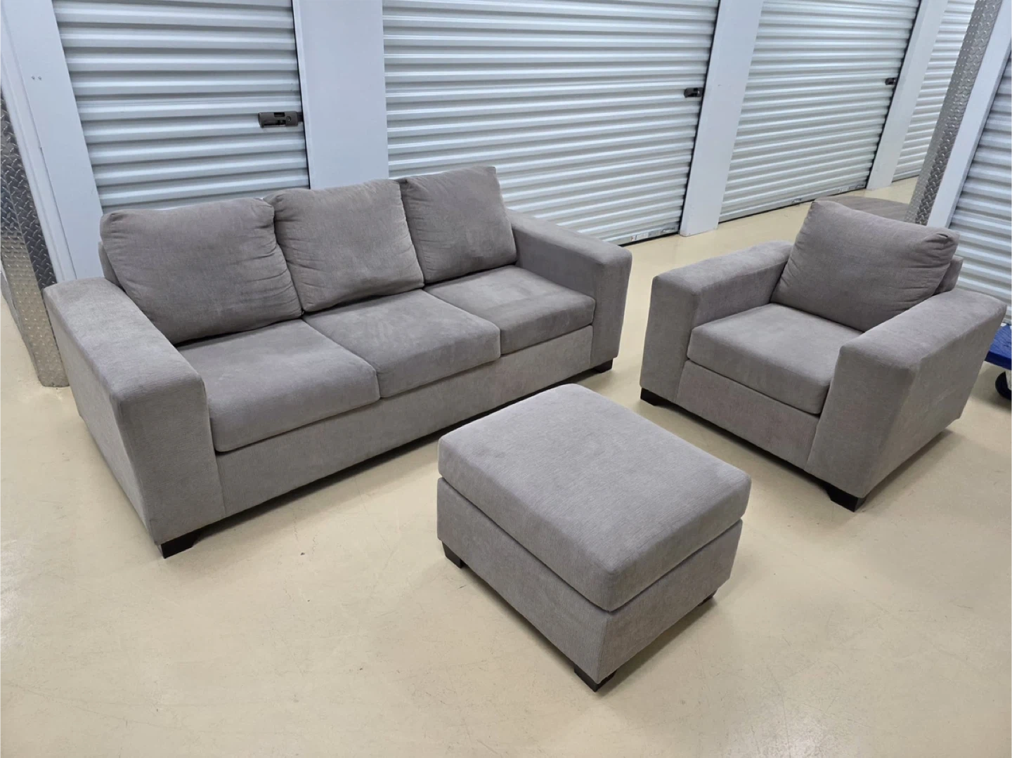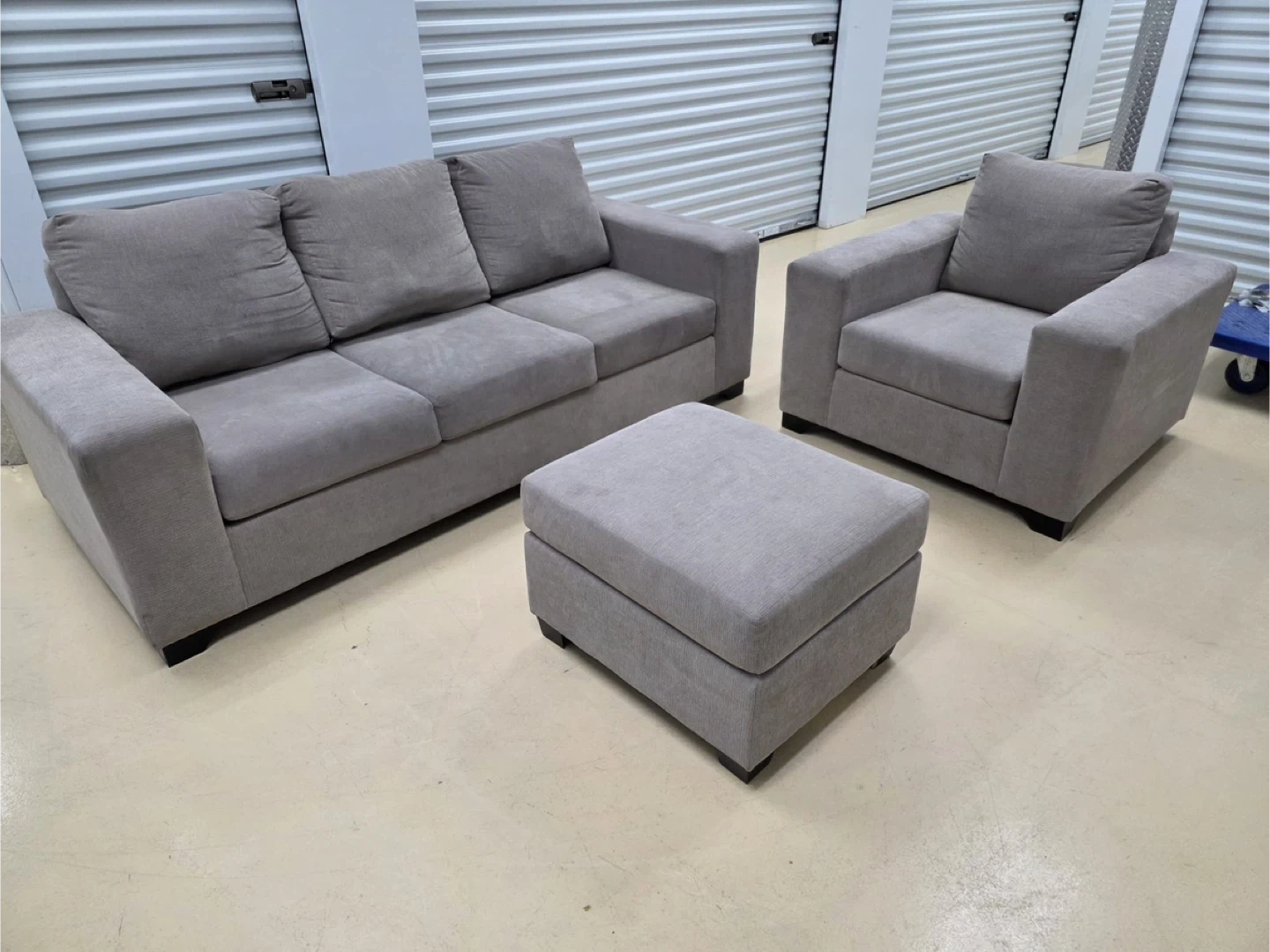 Grey Sofa, Loveseat, and Ottoman Set