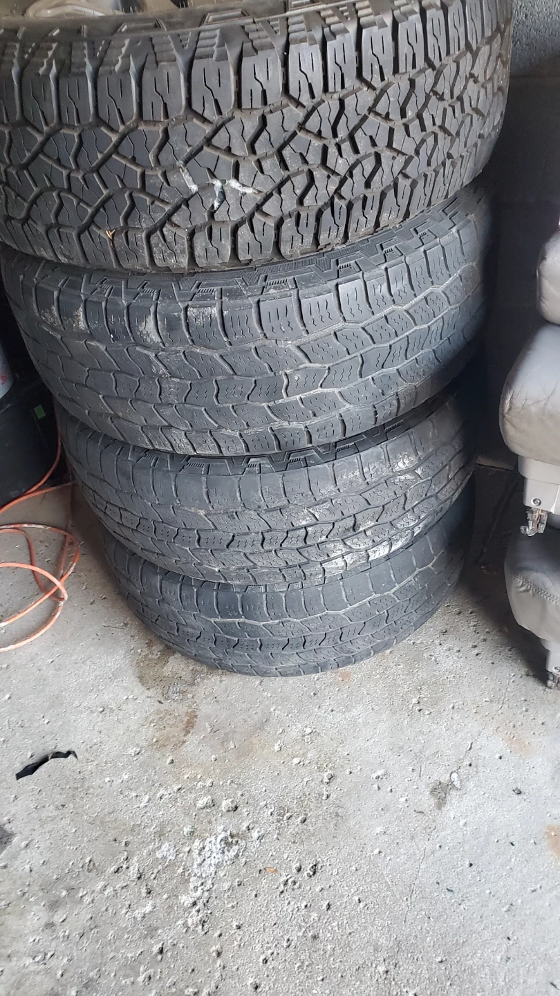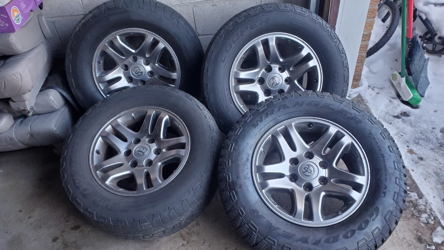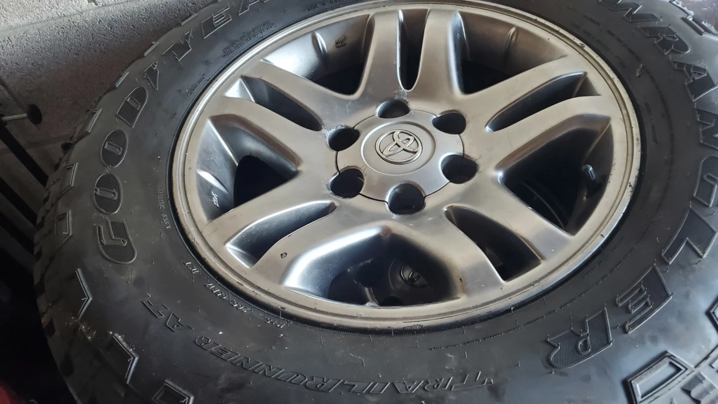 Four Goodyear Wrangler All-Terrain tires, size 265/65R17. These tires are suitable for various terrains and driving conditions. Frim price for Toyota