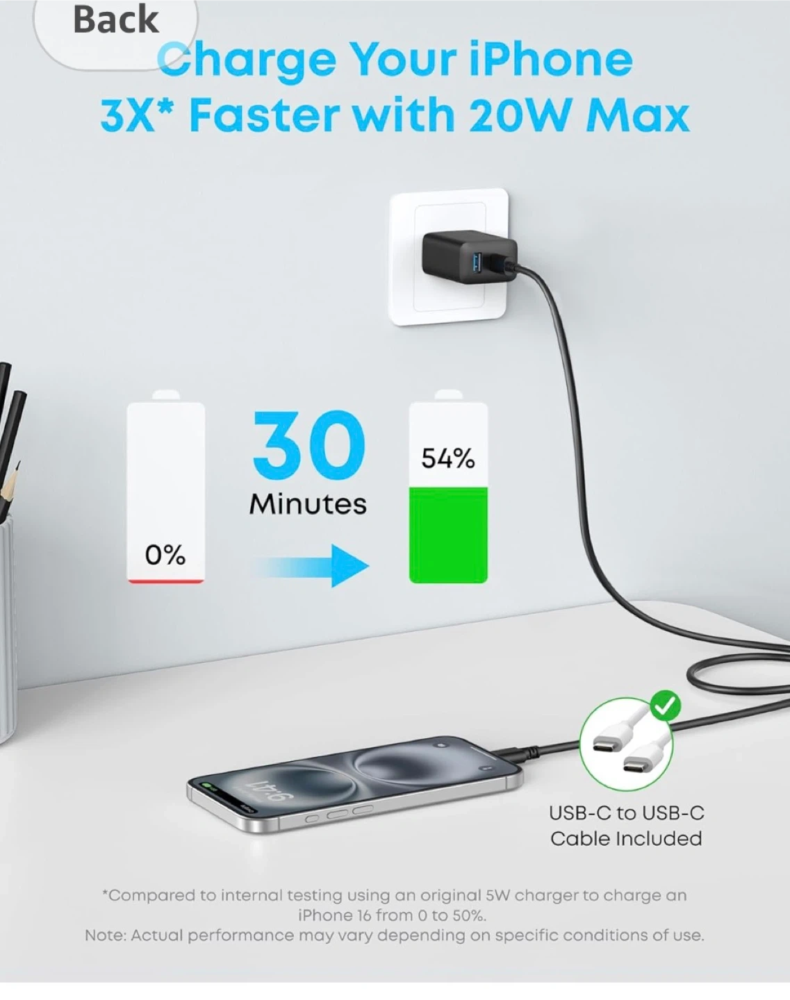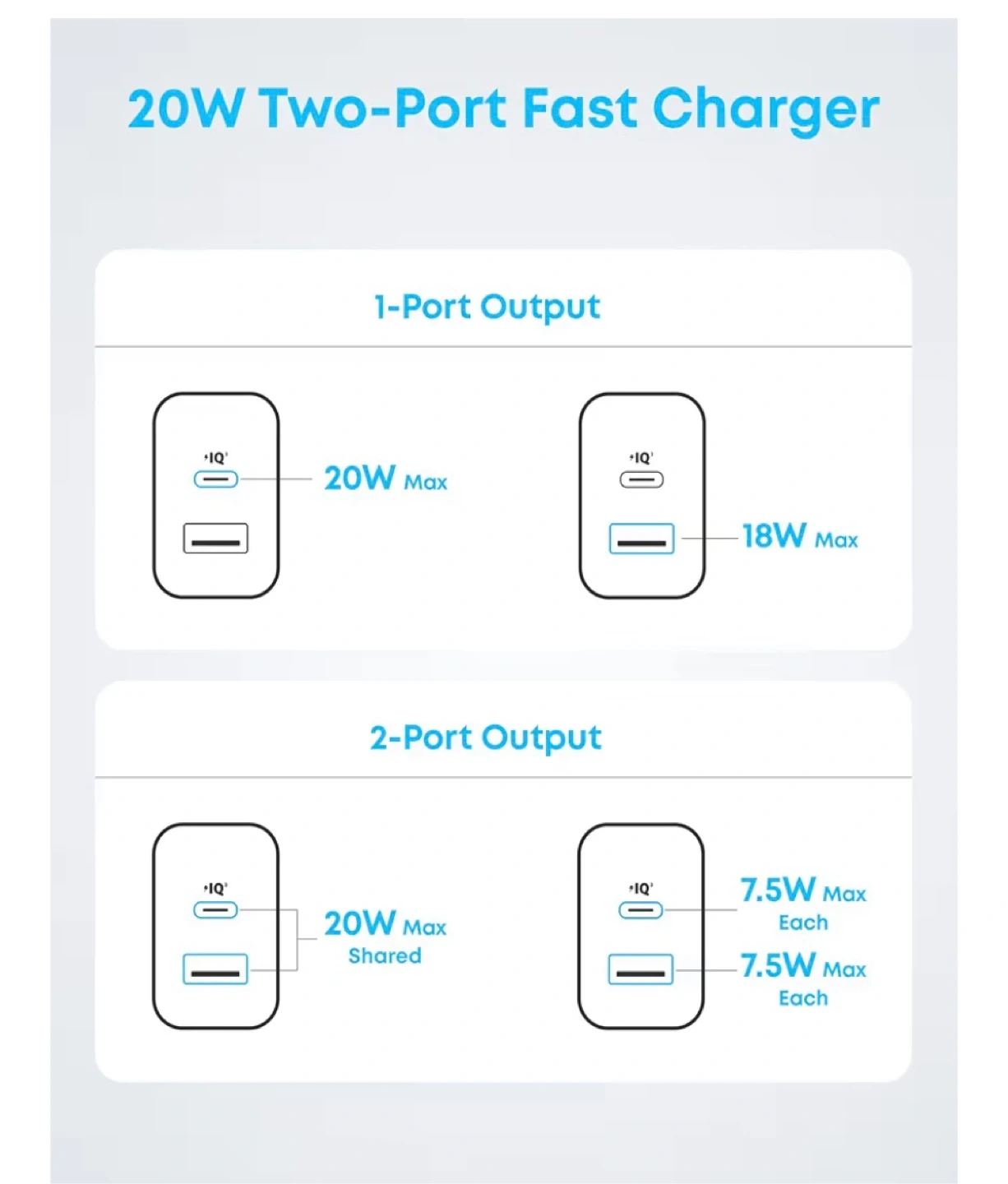 * What You Get: Anker Charger (2-Port, 20W), and 5 ft USB C to USBC