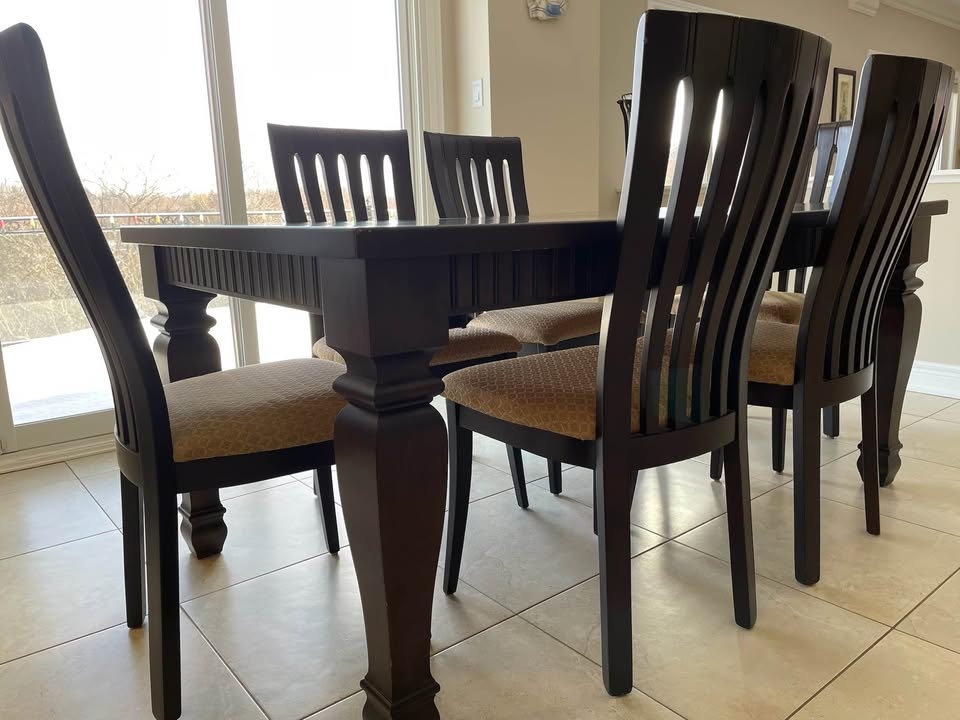Custom Made Solid Maple Wood Dining Table with 6 Chairs