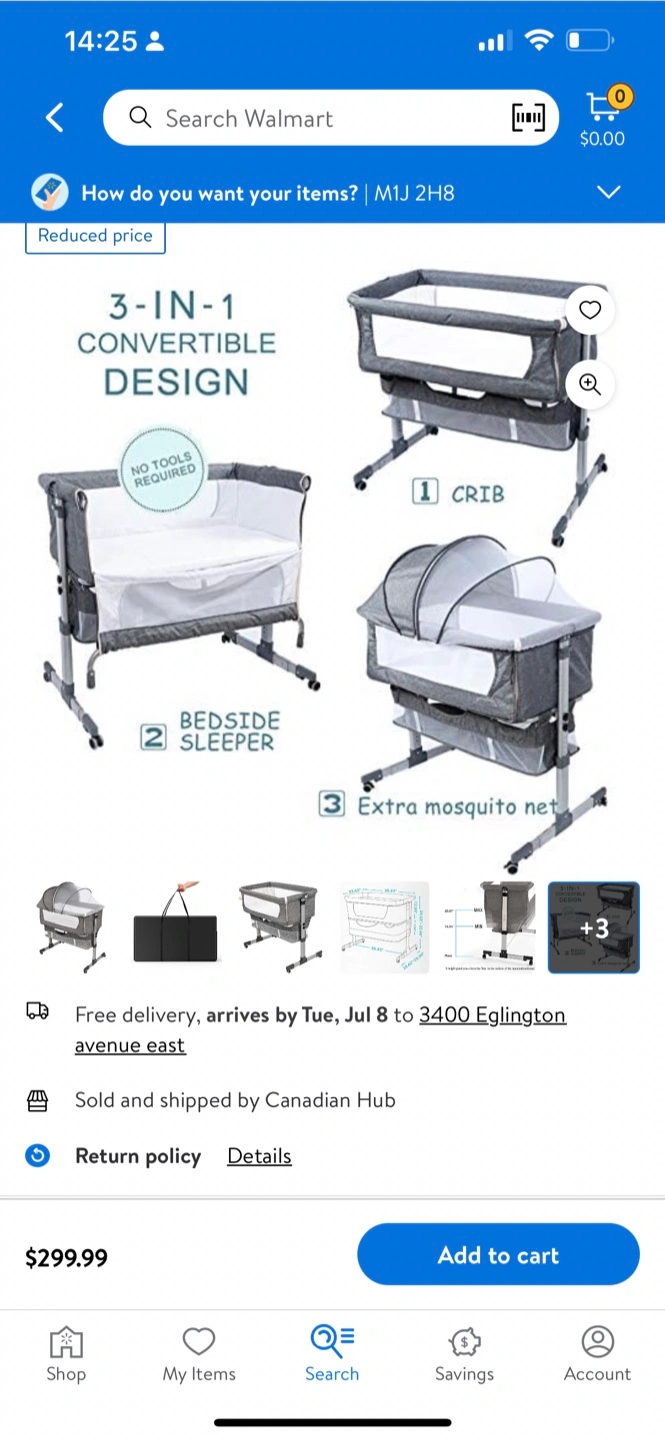 This is a 3-in-1 convertible design bedside sleeper and crib! It also comes with an extra mosquito net. Sold and shipped by Canadian Hub. Originally bought for $299.99. But I’m asking $100 for this fairly used in less than eight months.
