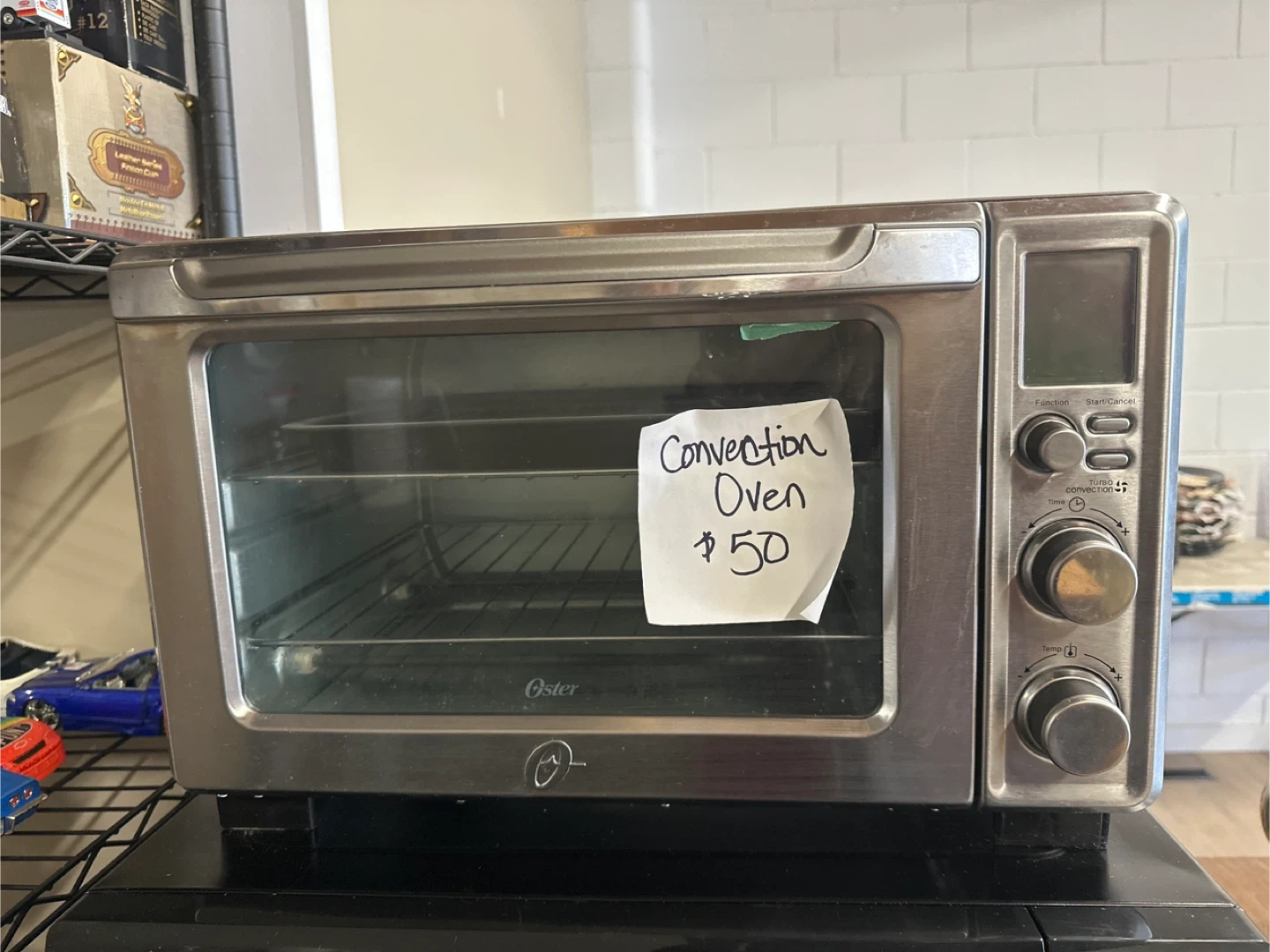Selling an Oster convection toaster oven. It's in good condition and ready to use for all your baking and toasting needs! It comes with a rack.