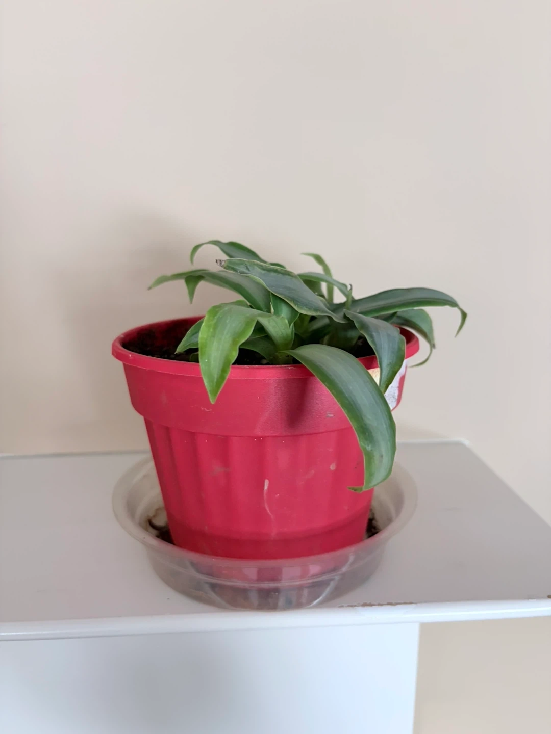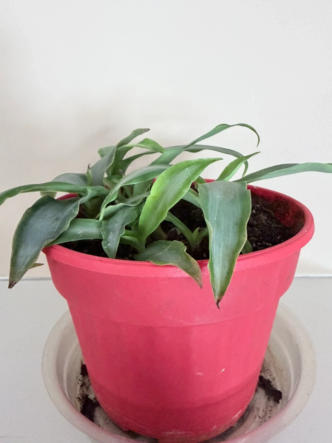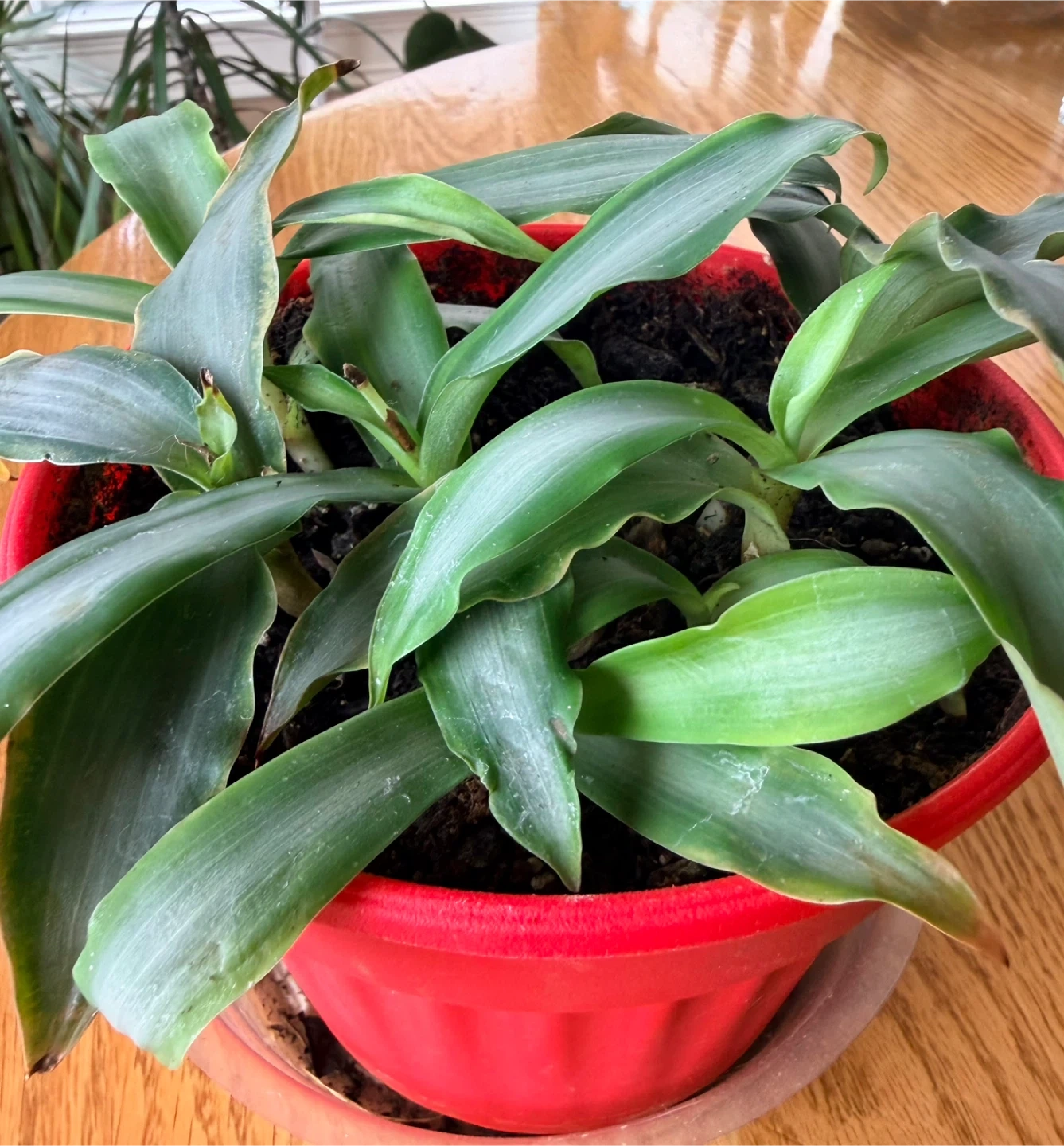 Possibly an Earth Star in a red plastic pot with a clear saucer. I’ve had it for over 2 years now, transplanted last August. This is as big as it has ever been. No bugs. Selling because I simply have too many plants. It's a nice addition to any indoor space! Pot measures approximately 6 inches tall.